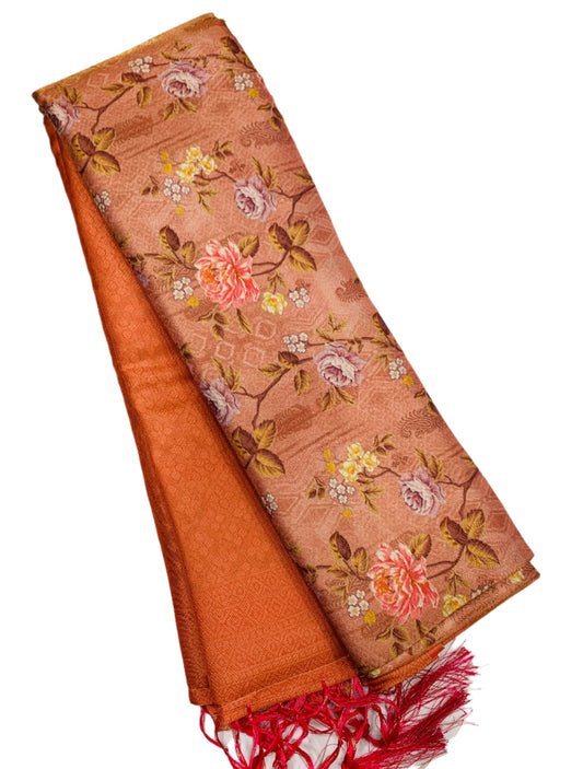 Digital Print Silk Saree Light Brown Colour with Floral Pattern