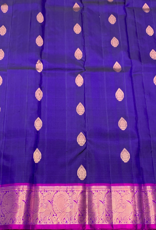 Pure Kanchipuram Silk Saree Blue Colour with Magenta Border