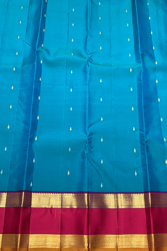 Pure Kanchipuram Silk Saree Sky Blue Colour with Rettai Pettu Border