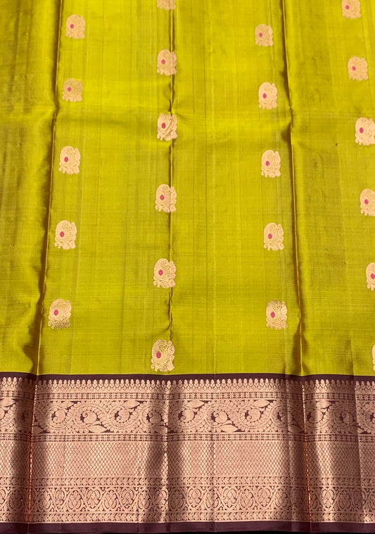 Pure Kanchipuram Silk Saree Olive Green Colour with Brown Border