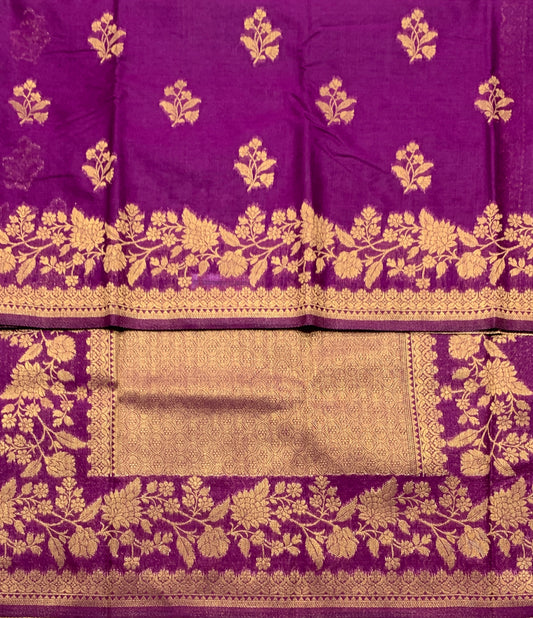 Kora Silk Saree Magenta Colour with Flower Design Border