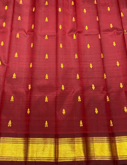 9 yards Pure Kanchipuram Silk Saree Maroon Colour with Golden Zari Border