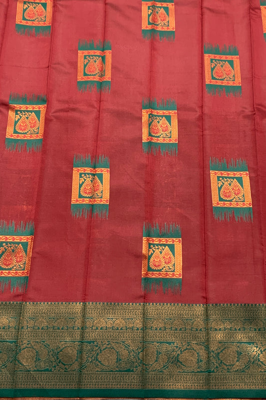 Pure Kanchipuram Silk Saree Maroon Colour with Gold Zari Border