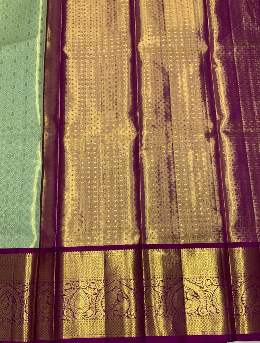 Apple Green Shade Pure Kanchipuram Kids Pattu Pavadai with Contrast Border for age 5 to 10