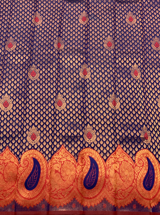 Navy Blue Colour Art Silk Saree with Maroon Border