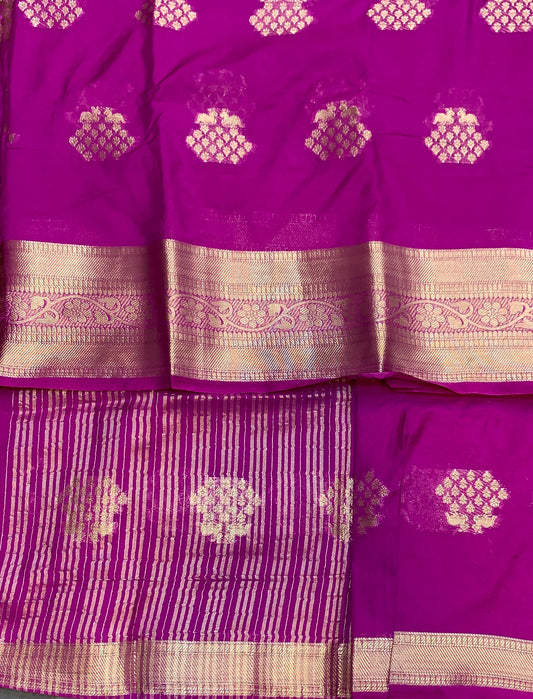 Crepe Saree Magenta Colour with Sliver Zari work Border