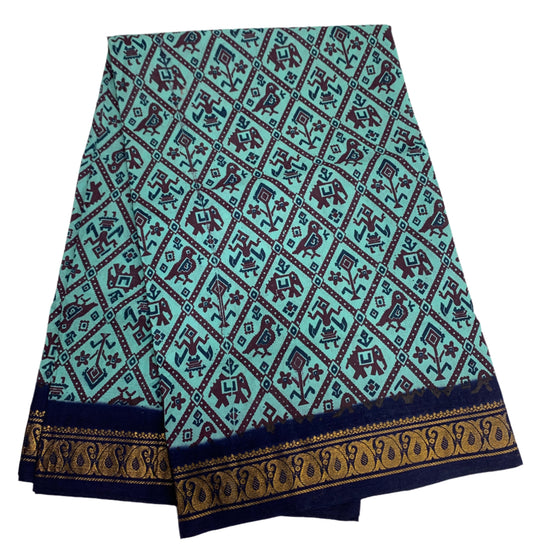 Chettinad Sungudi Cotton Sapphire Colour with Navy Blue Border