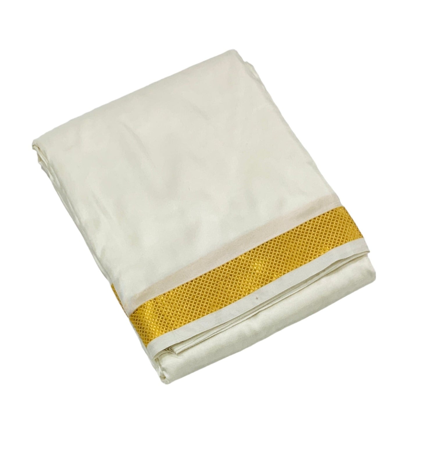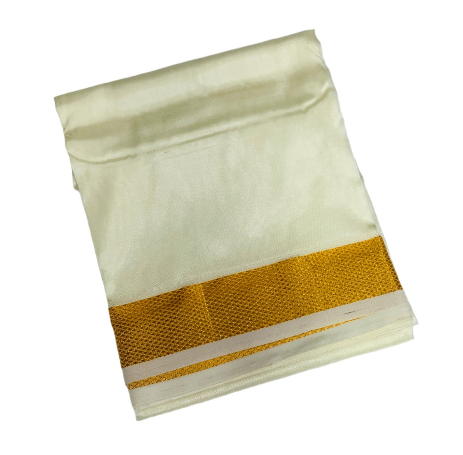 9X5 Pure Silk Dhoti Red with Large Golden Zari Border