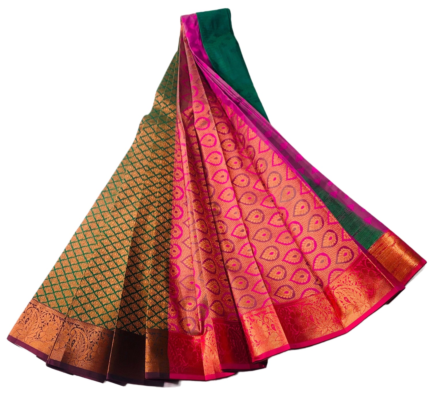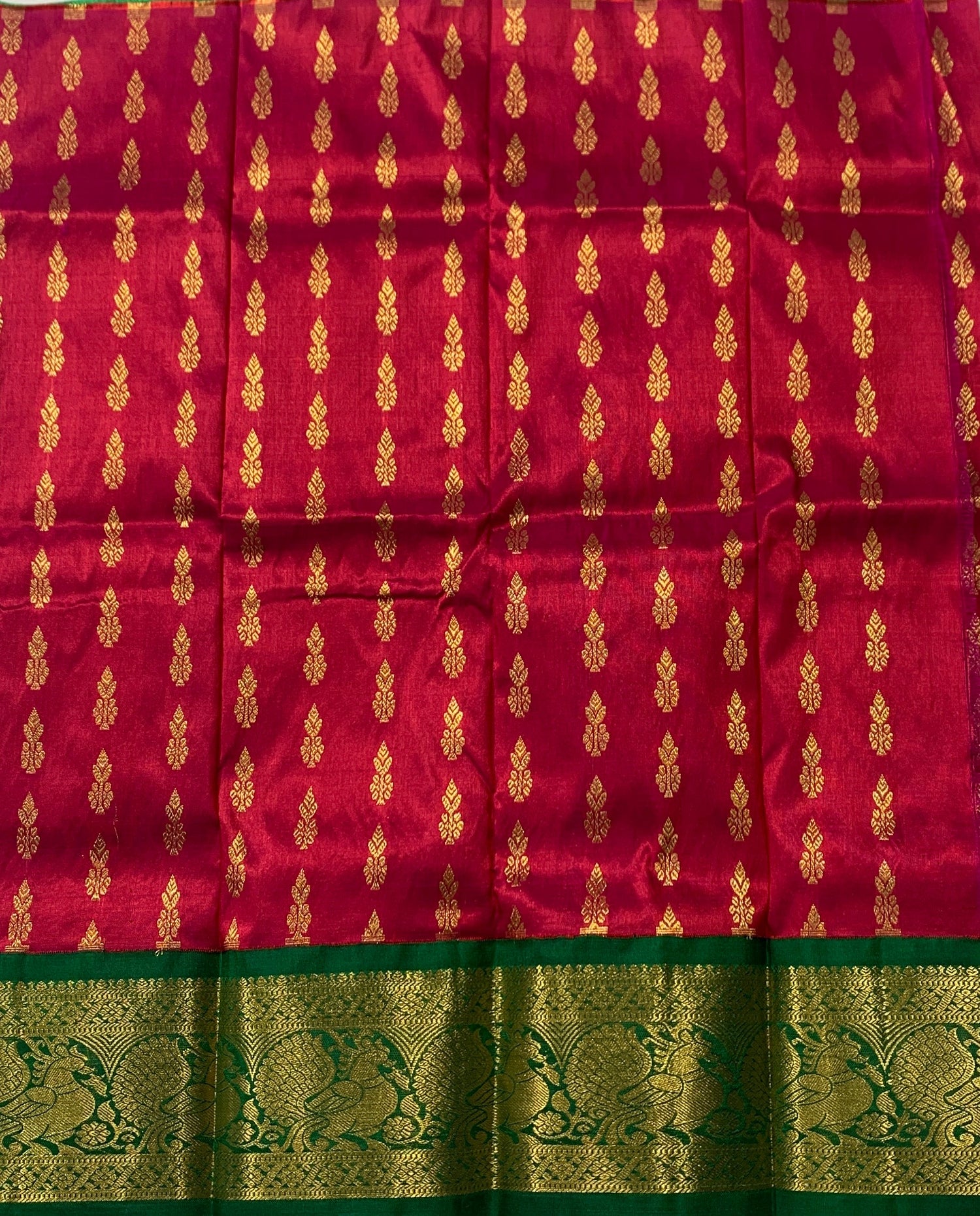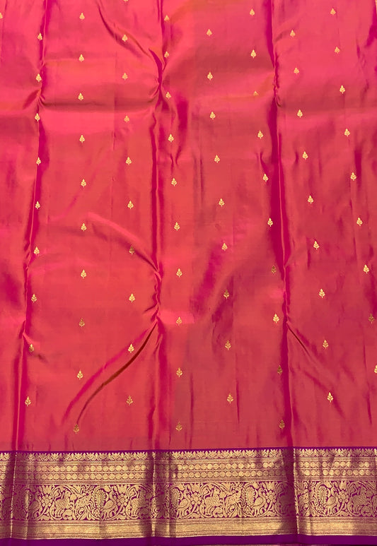 Pure Kanchipuram Silk Saree Dual Colour with Contrasting Magenta Border and Gold Detailing