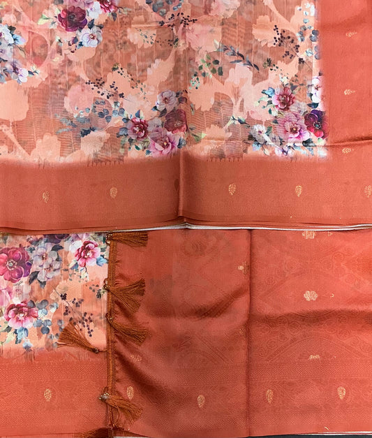 Digital Print Cotton Saree Brown Colour with Floral Pattern