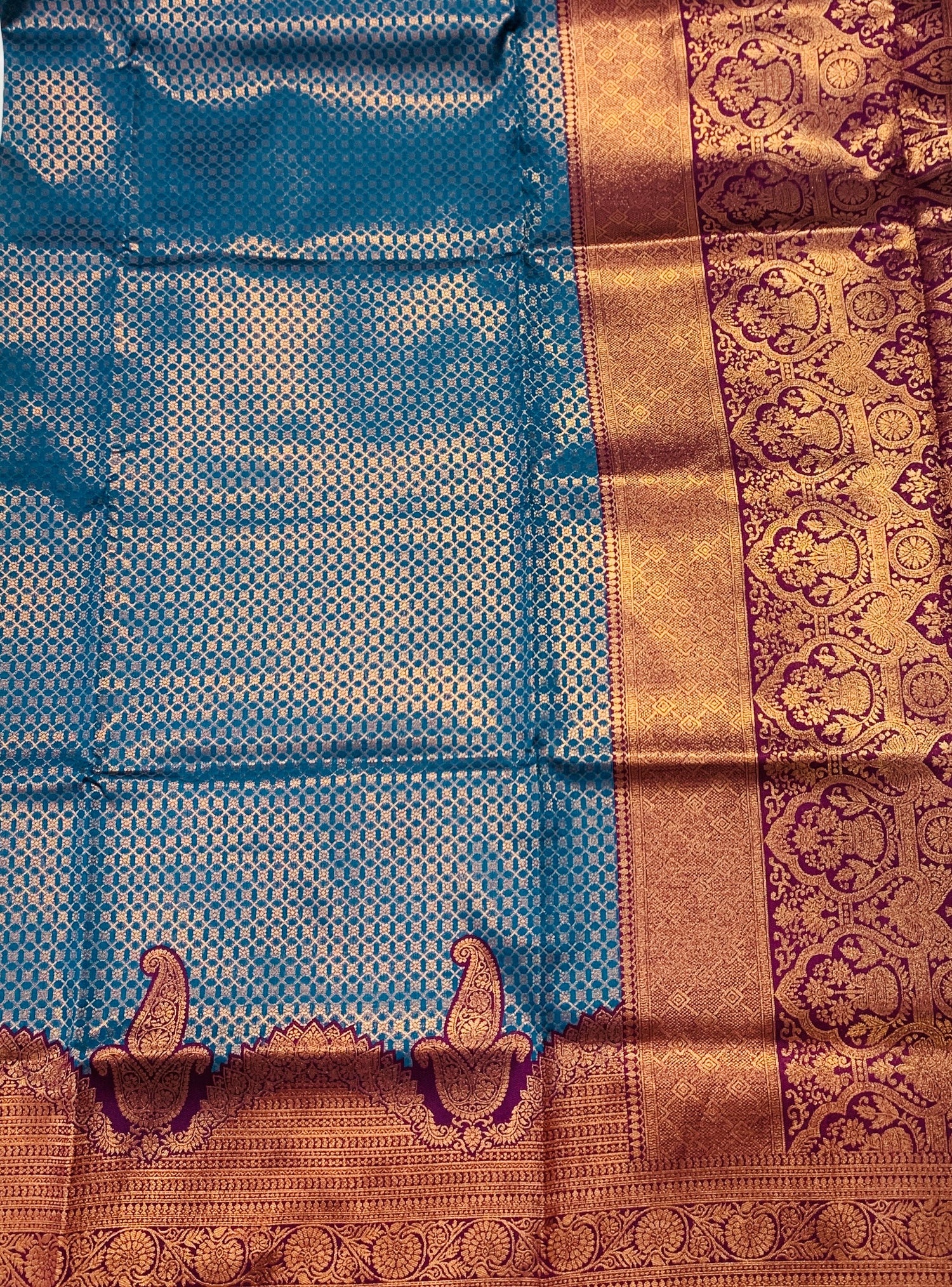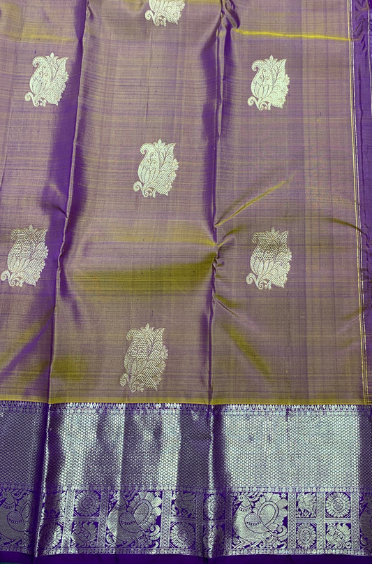 Pure Kanchipuram Silk Saree Dual Colour with Purple Border