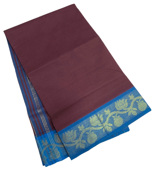 Chettinad Cotton Saree Magenta Colour with Sky Blue Border