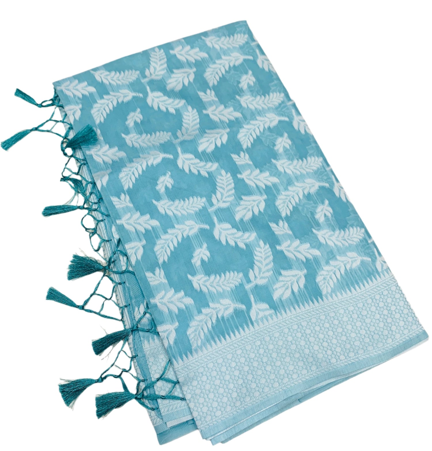 Banaras Soft Silk Saree Sky Blue Colour with Sliver Colour Floral Design Border