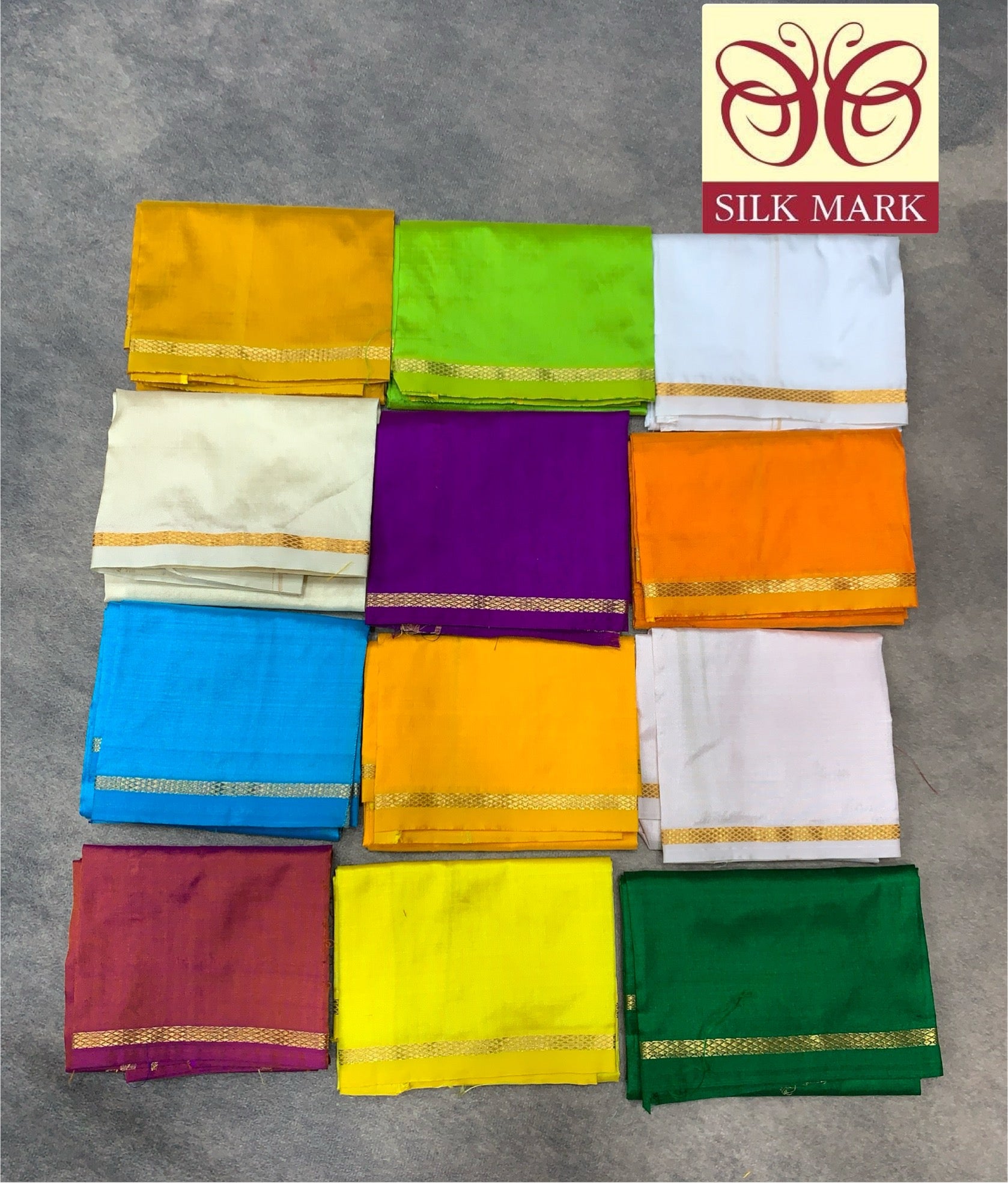 1 Mulam Silk Pooja Towel Colour Pack of 5 -( Random Colour)