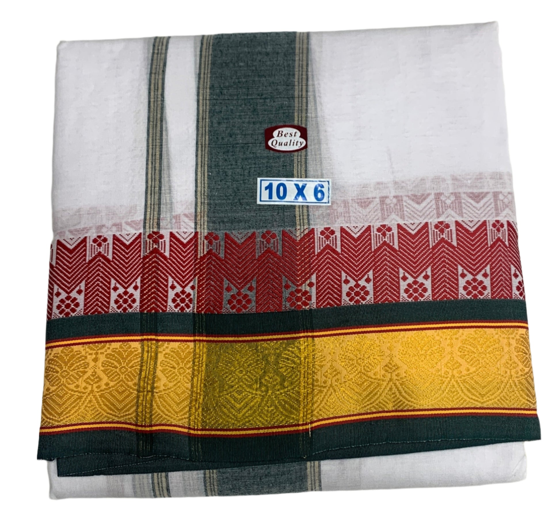 10X6 Cotton Dhoti White Colour with Yellow and Dark Green Border.