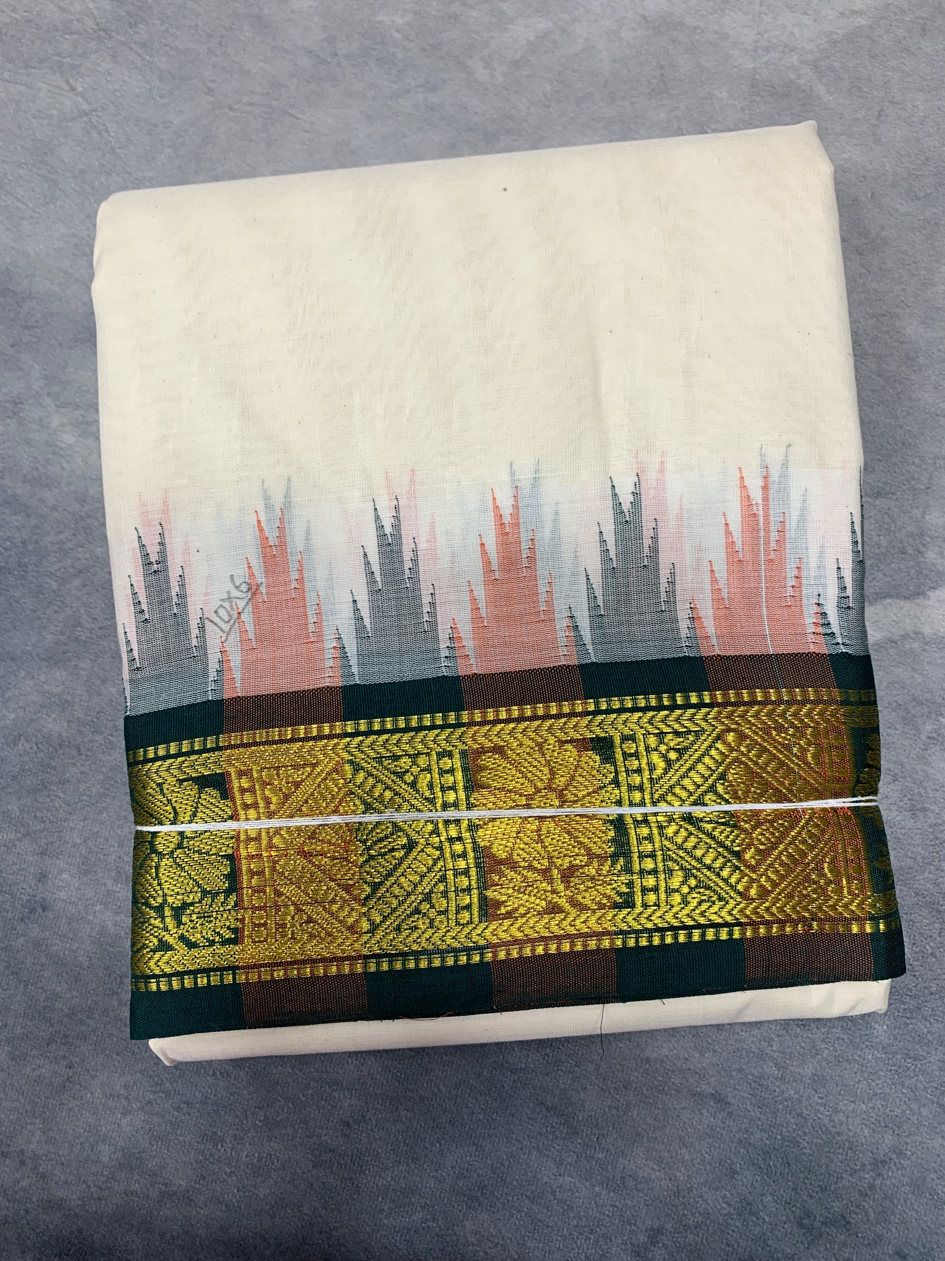 10X6 Korvai Cotton Dhoti Half White Colour with Green and Maroon Border