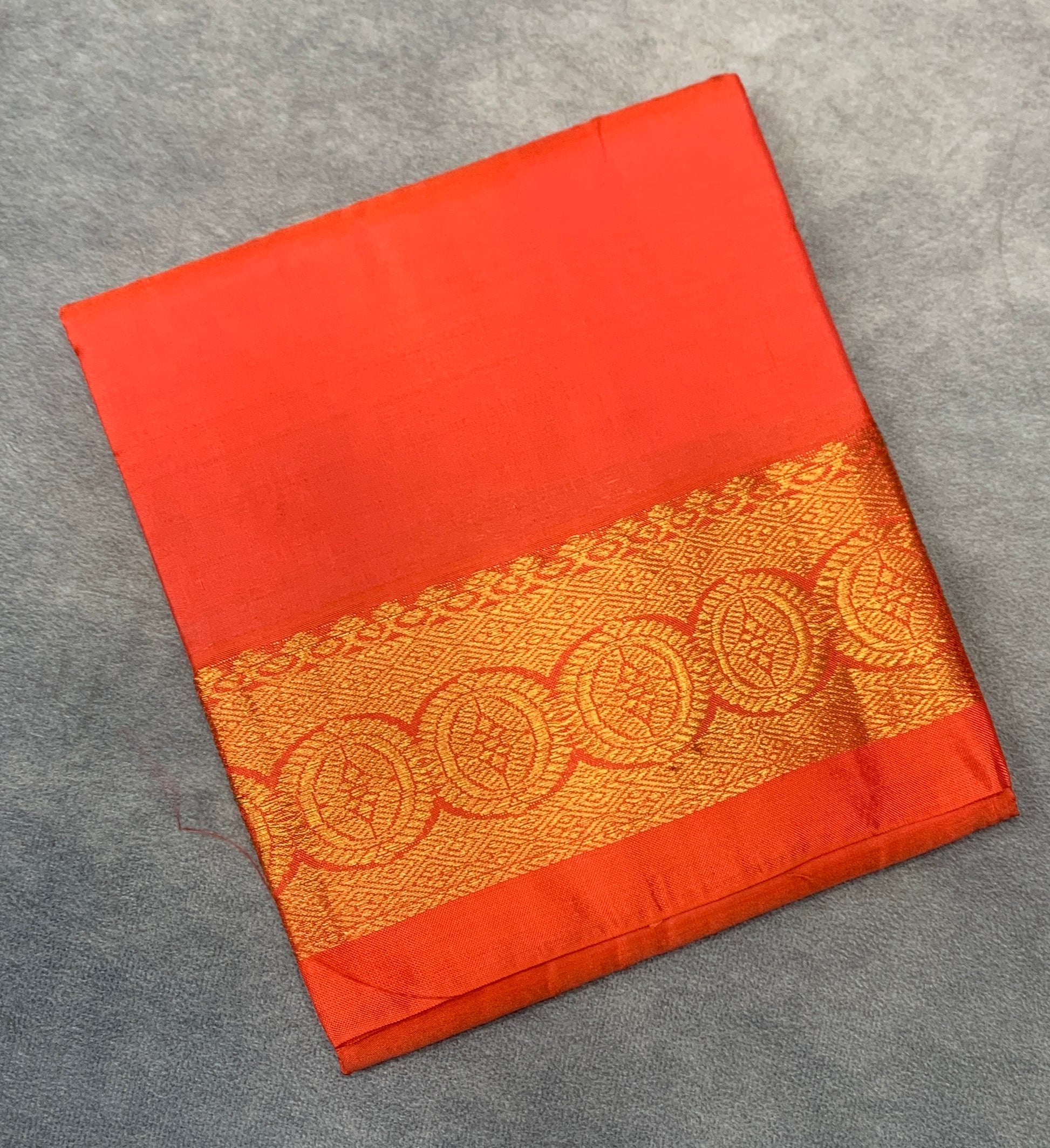 6 Mulam Silk Pooja Towel Orange Colour with Golden Border