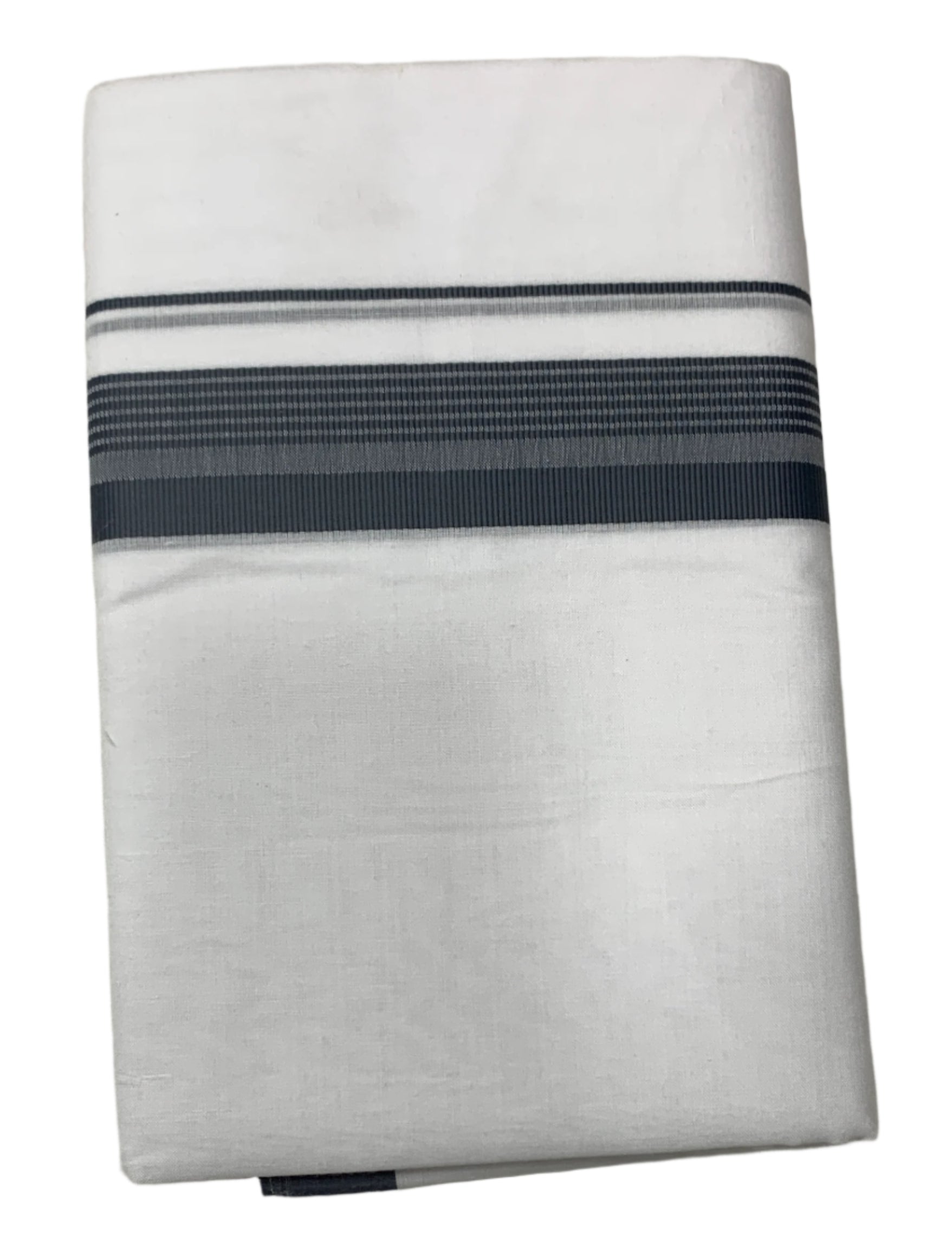 8 Mulam White Cotton Dhoti with Large Gray Border
