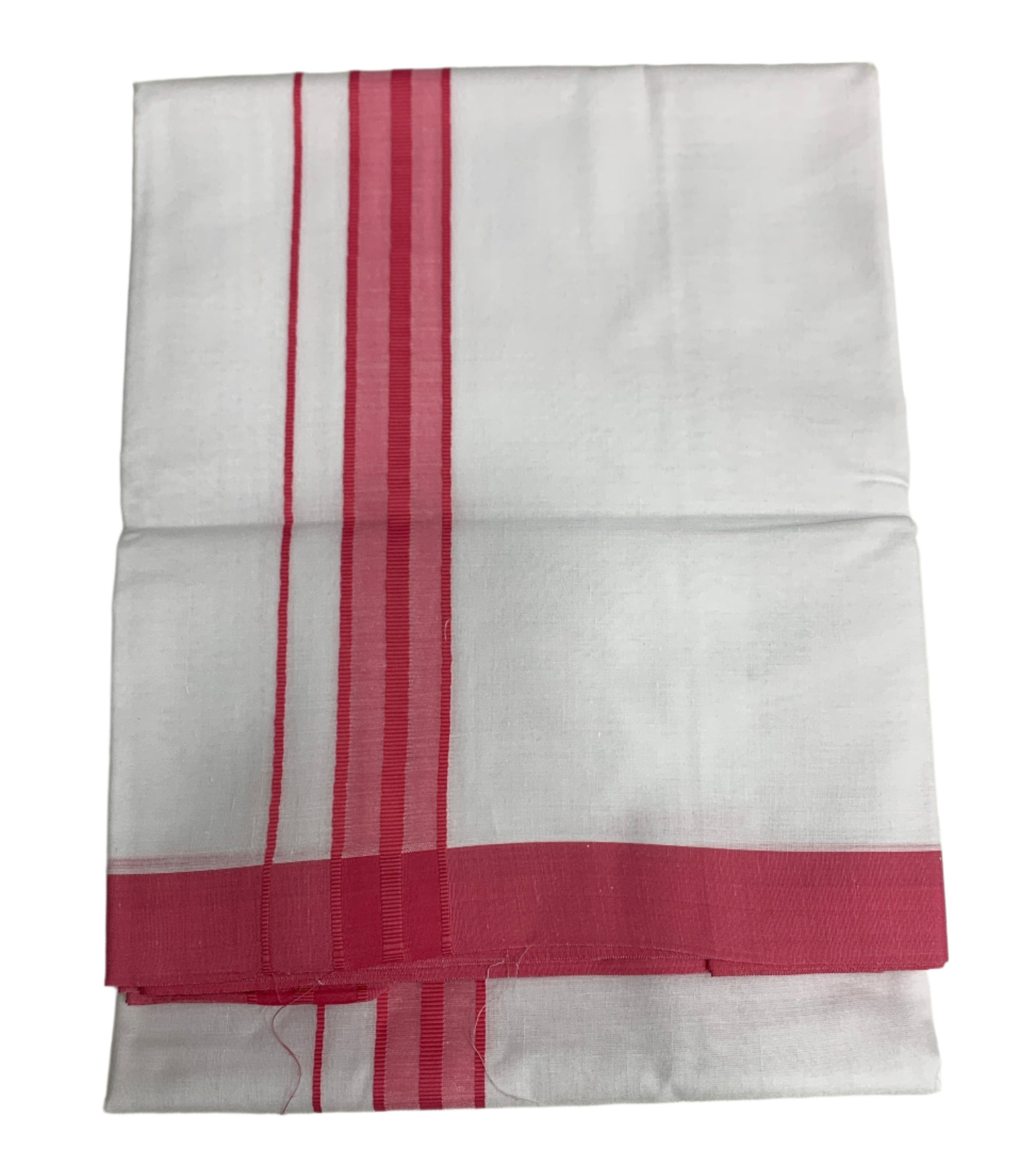 8 Mulam White Cotton Dhoti with Large Neon Pink Border