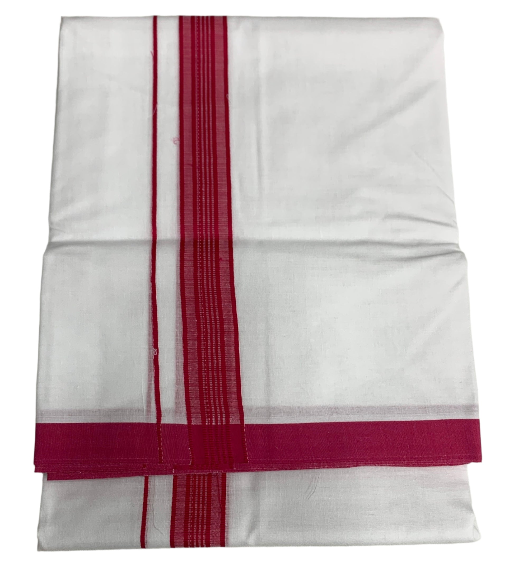 8 Mulam White Cotton Dhoti with Large Pink Border