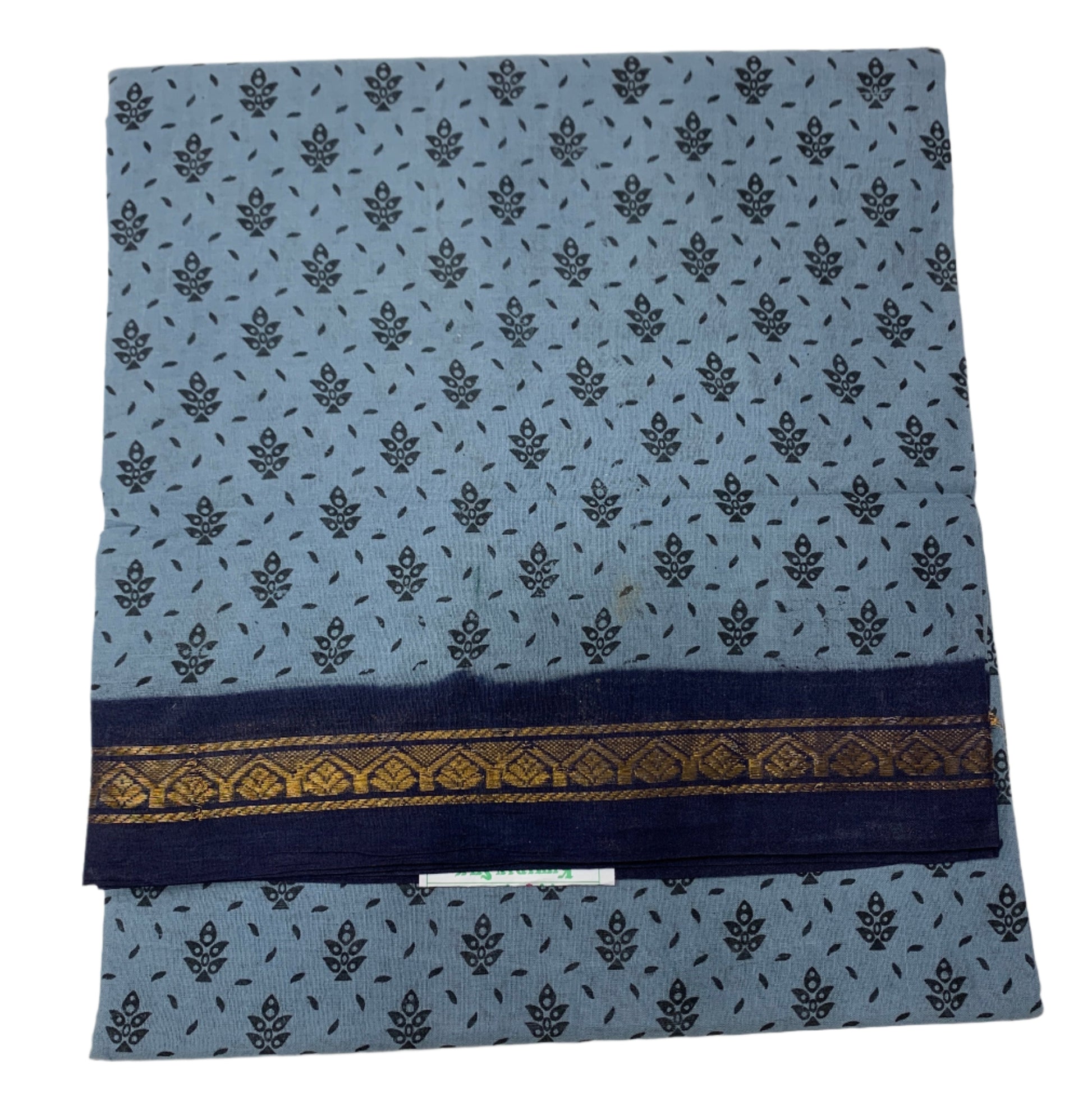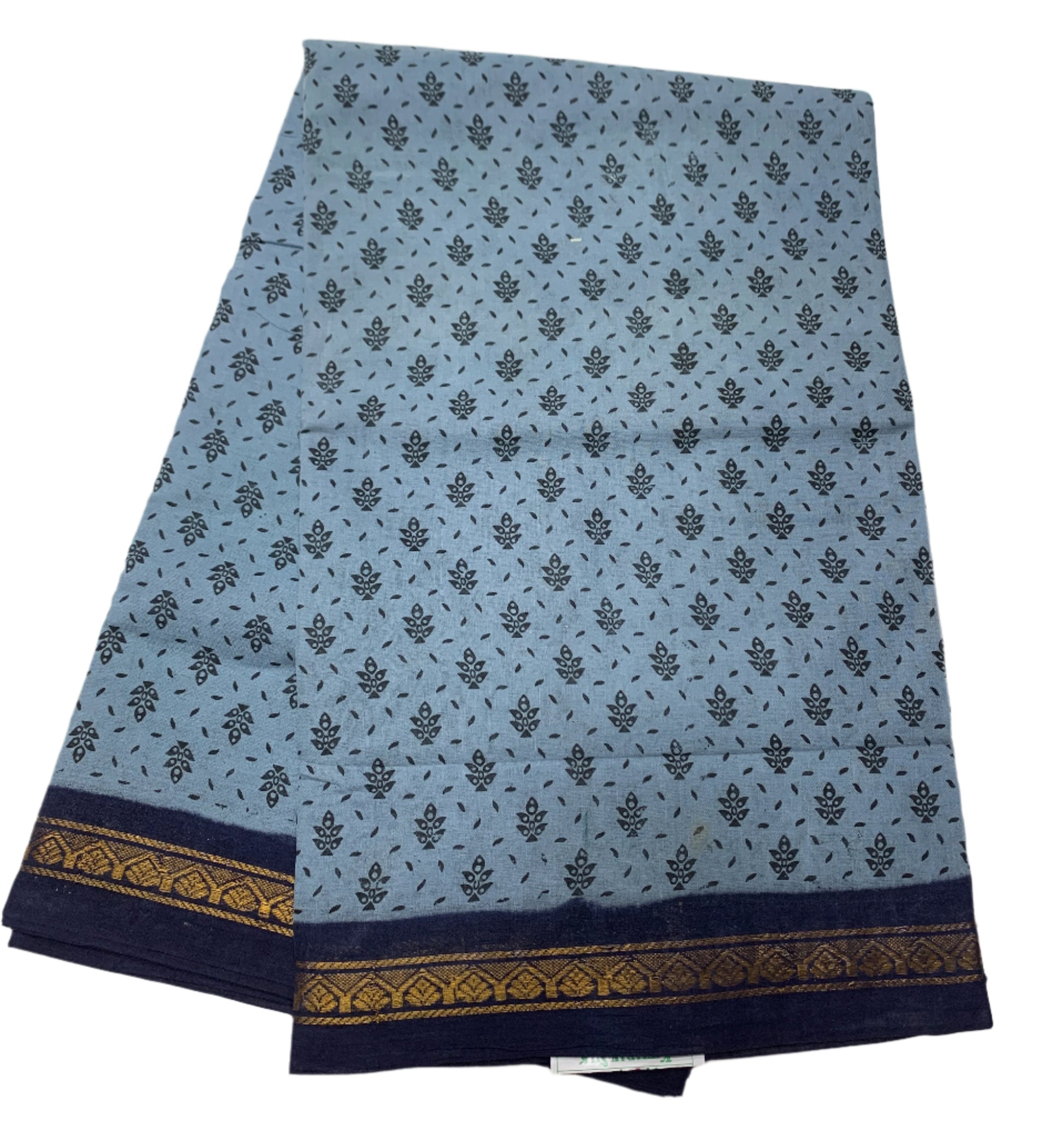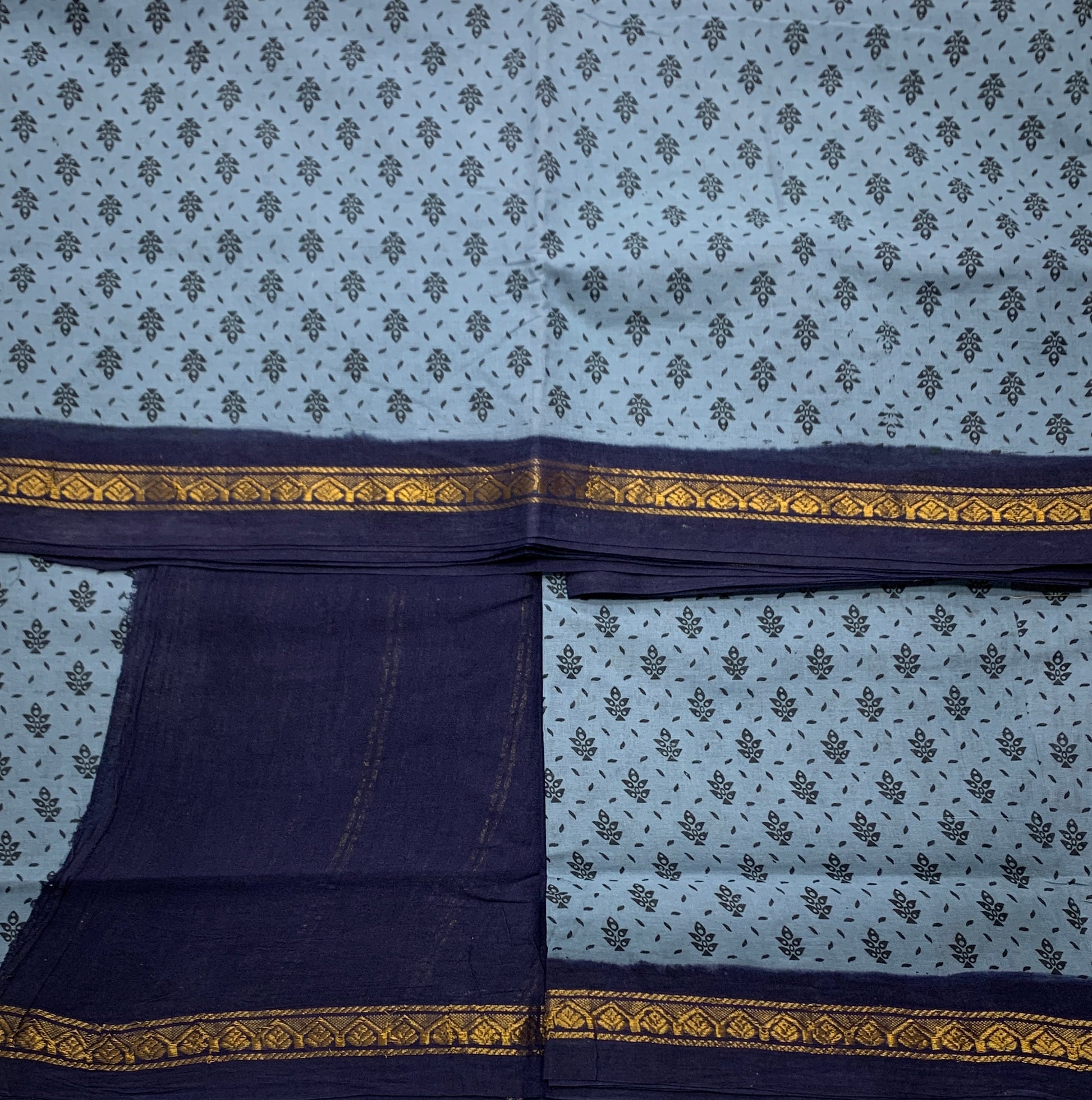 9 yards Cotton Saree Gray Colour with Navy Blue border.