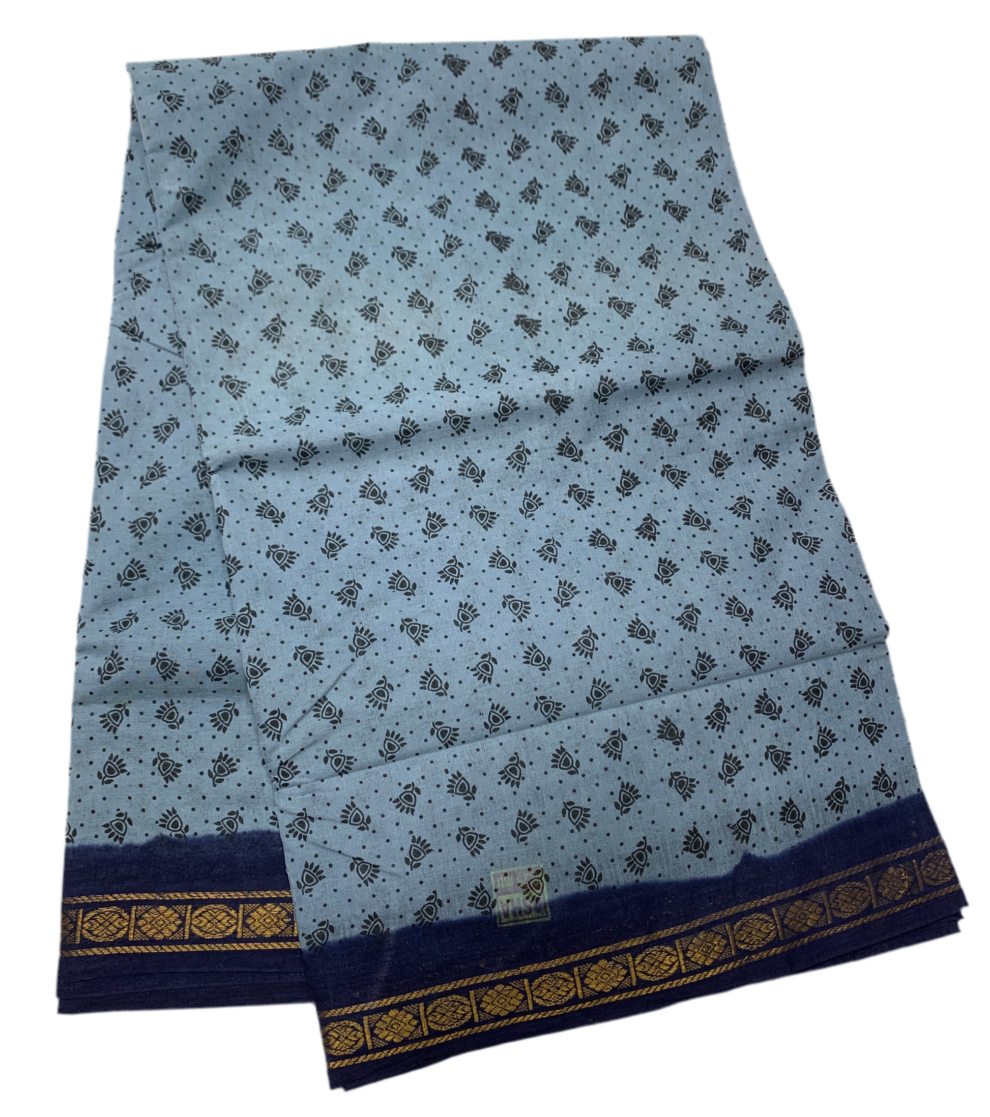 9 yards Cotton Saree Gray Colour with Navy Blue Border.