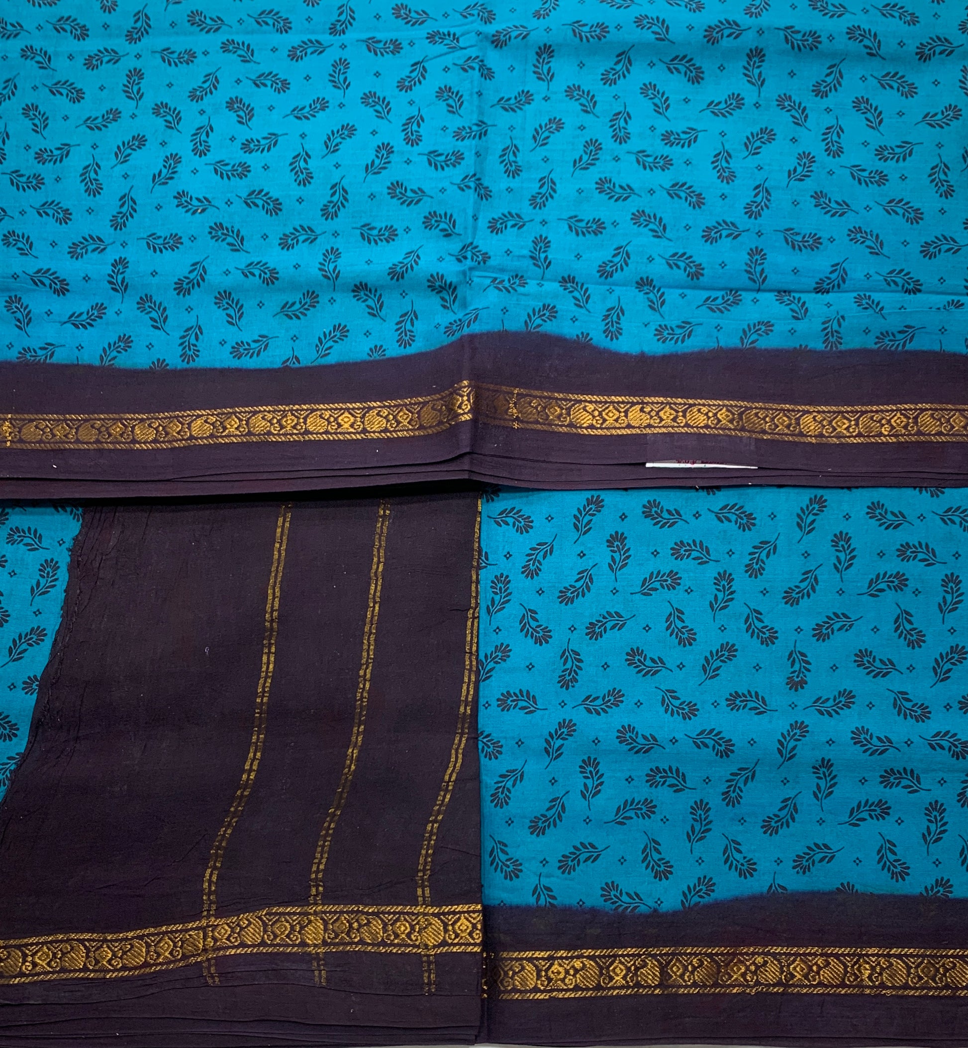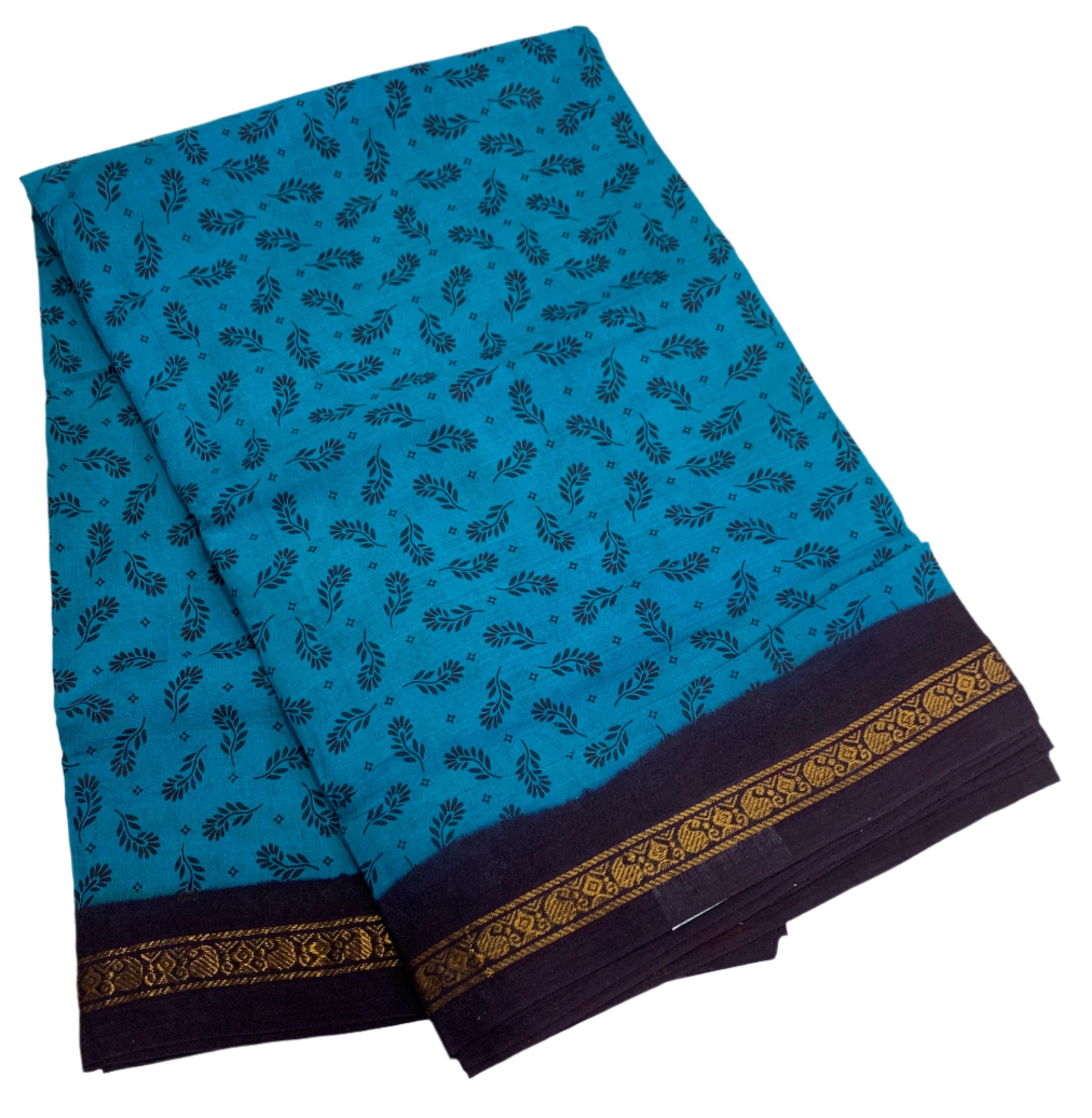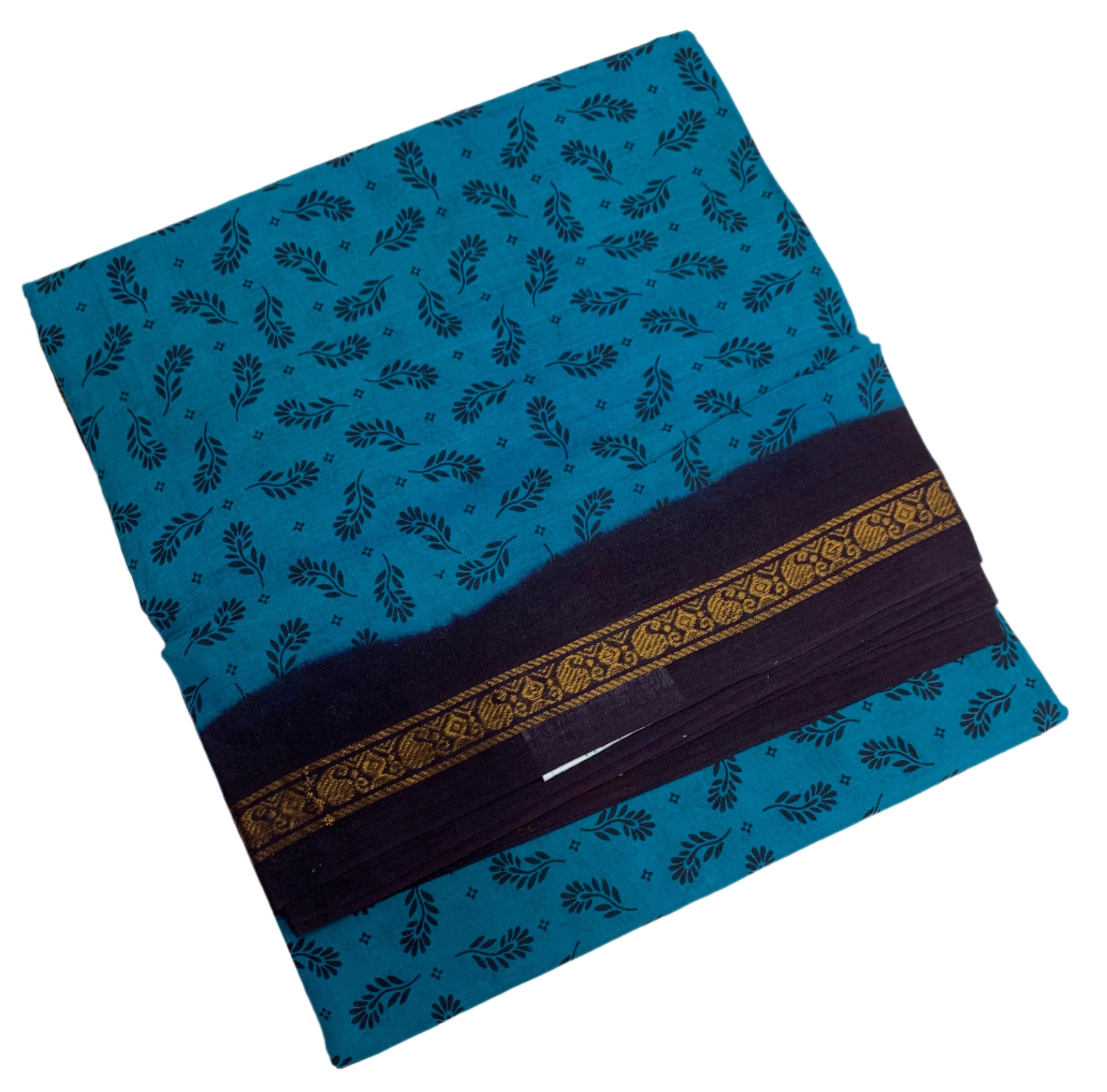 9 yards Cotton Saree Rama Blue Colour with Brown Border