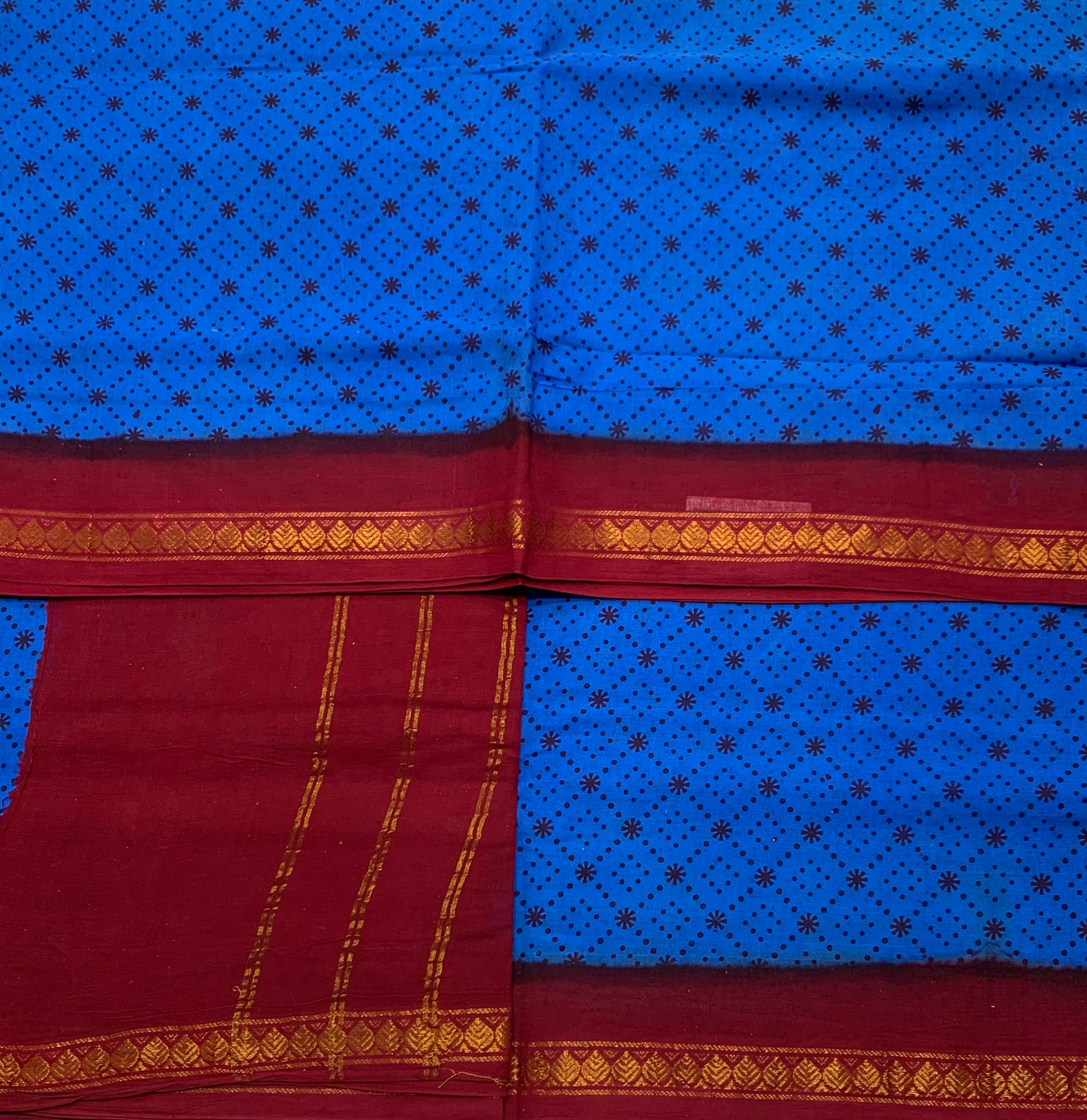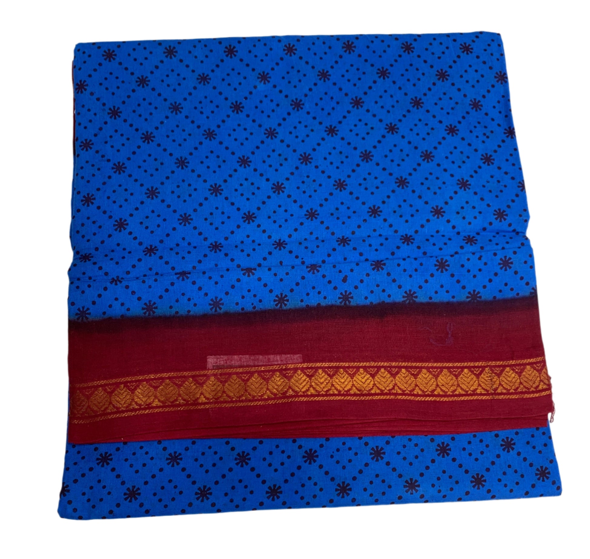 9 yards Cotton Saree Sky Blue Colour with Maroon border.