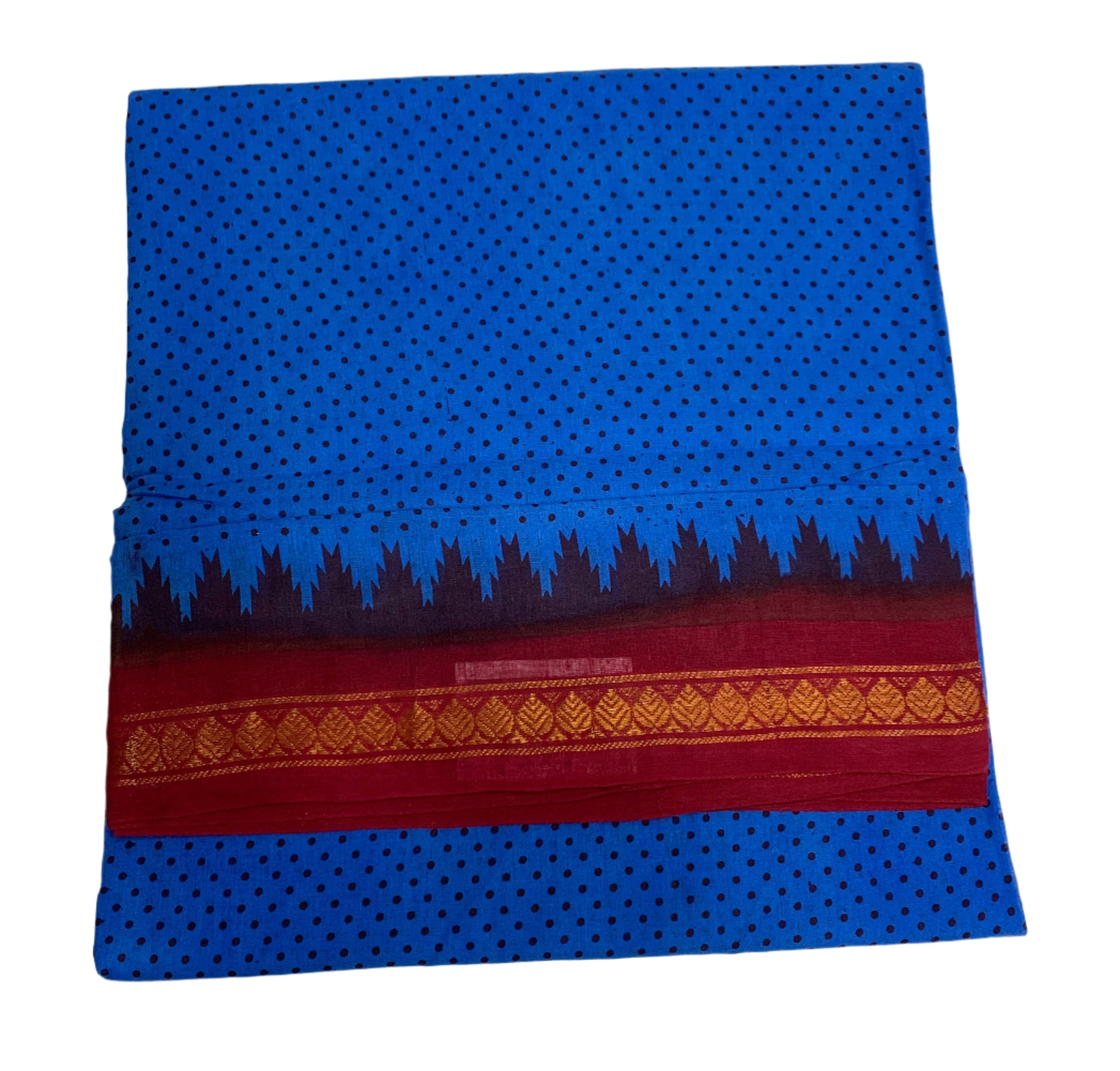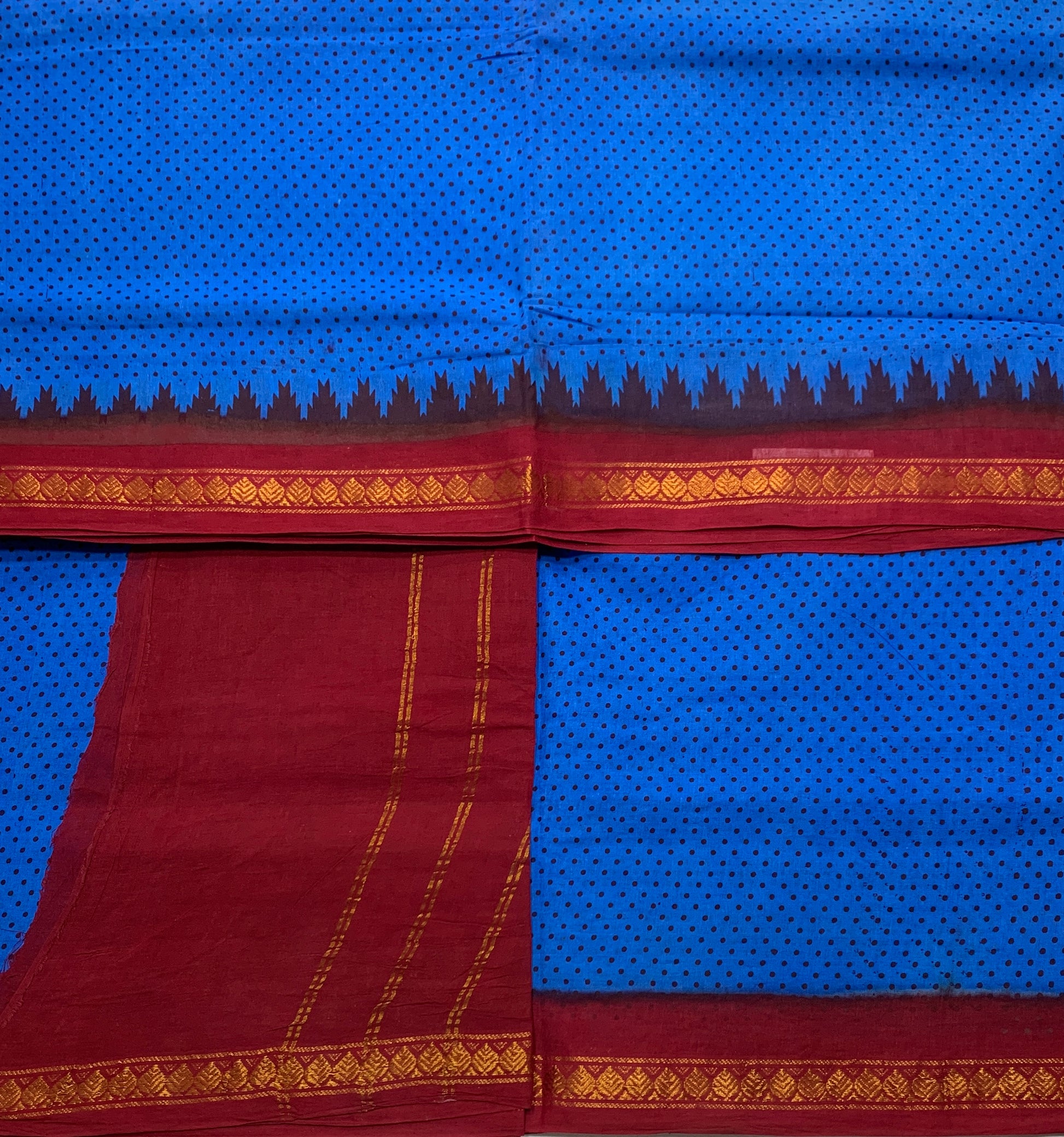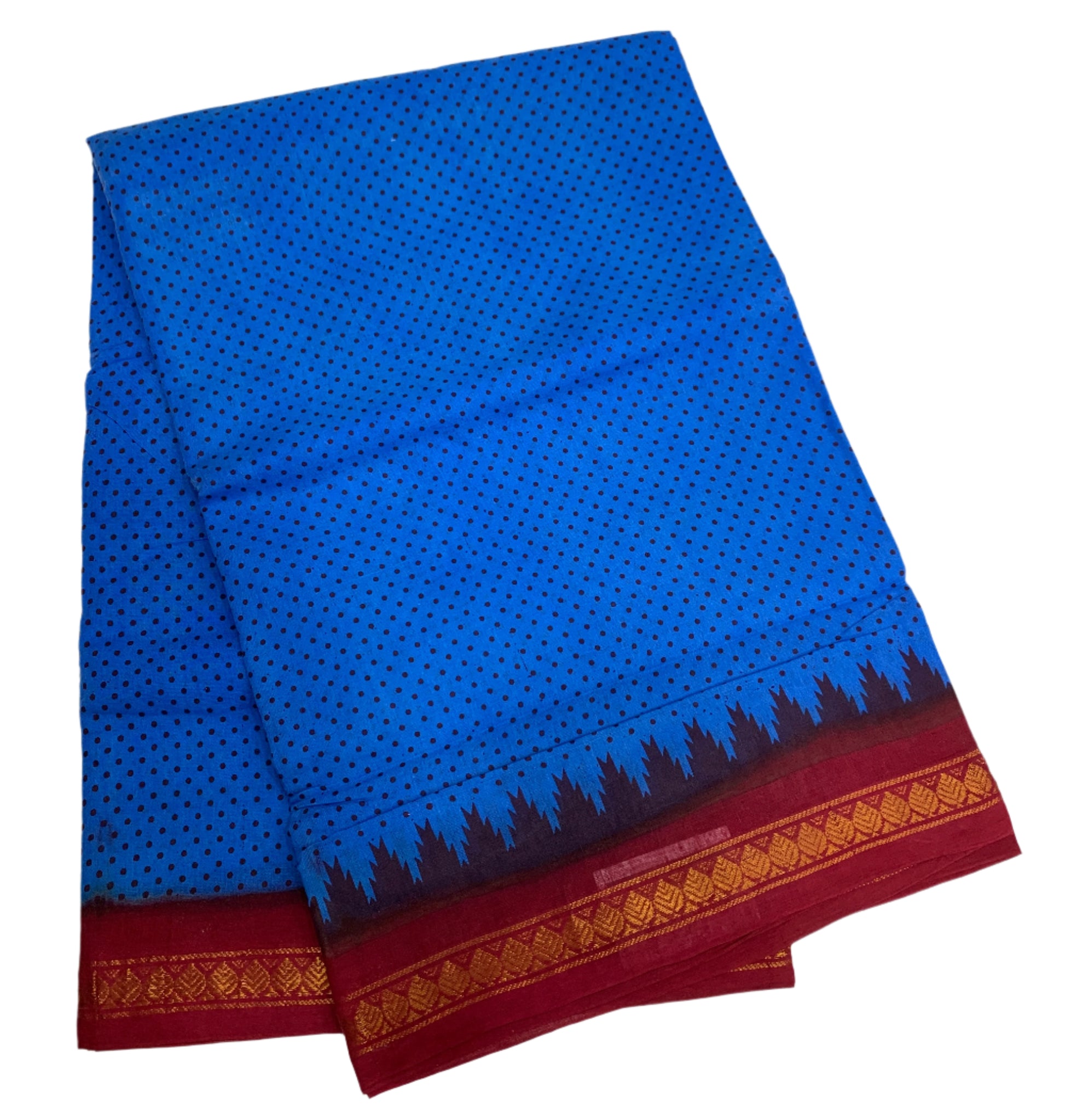 9 yards Cotton Saree Sky Blue Colour with Maroon border.