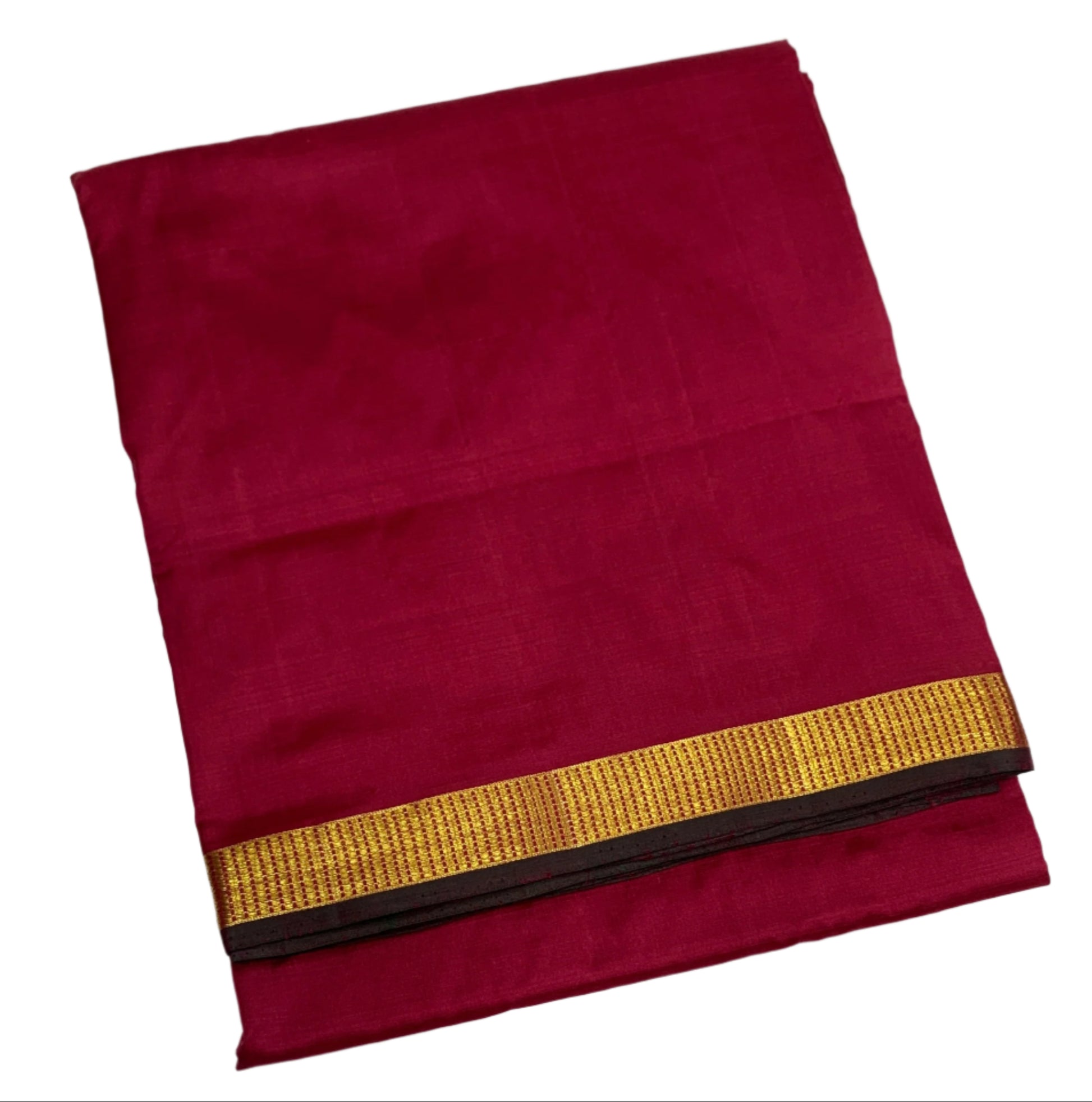 9 yards/Madisar Pure Kanchipuram Silk Saree Maroon Shade with Golden Zari Border with Silk Mark