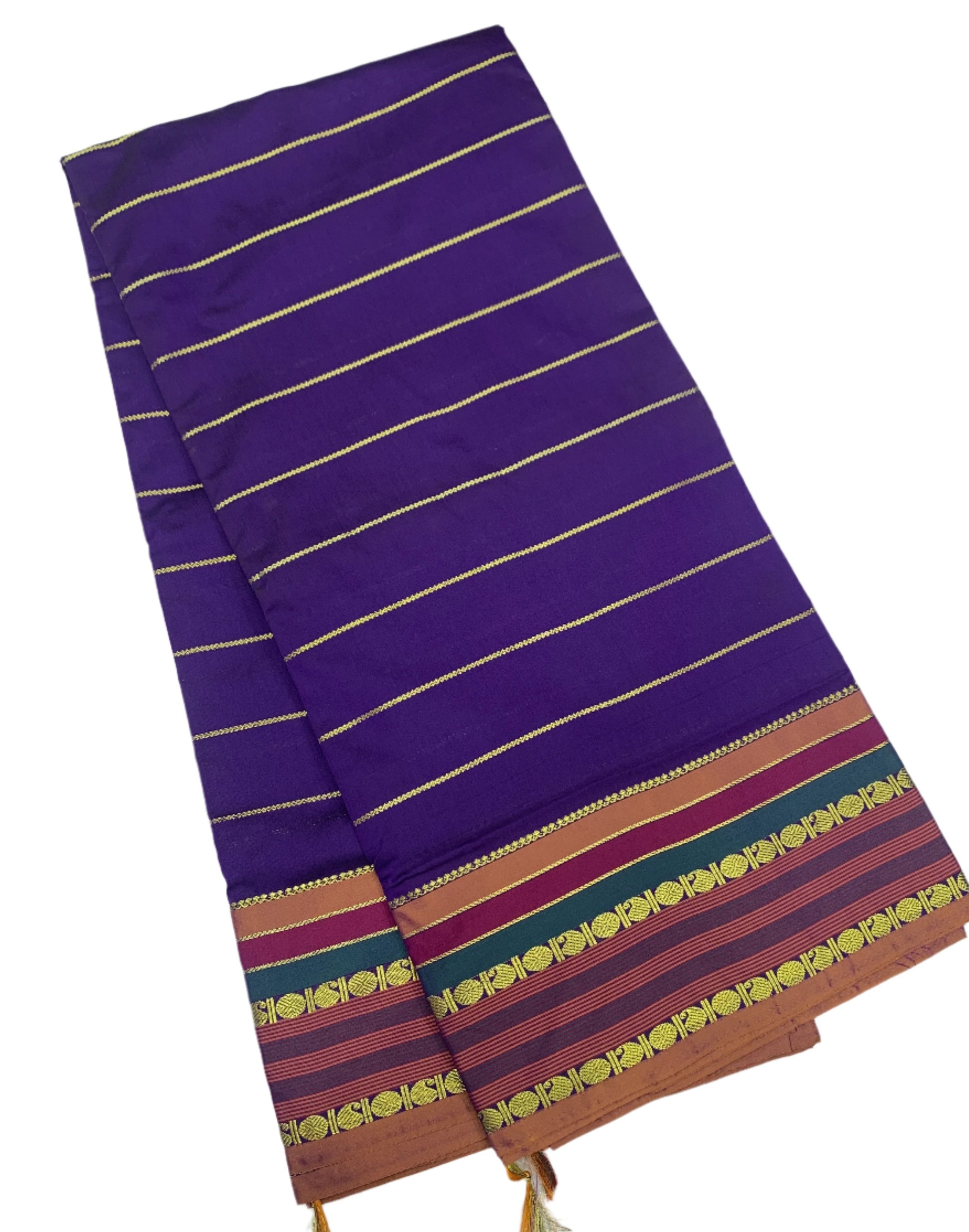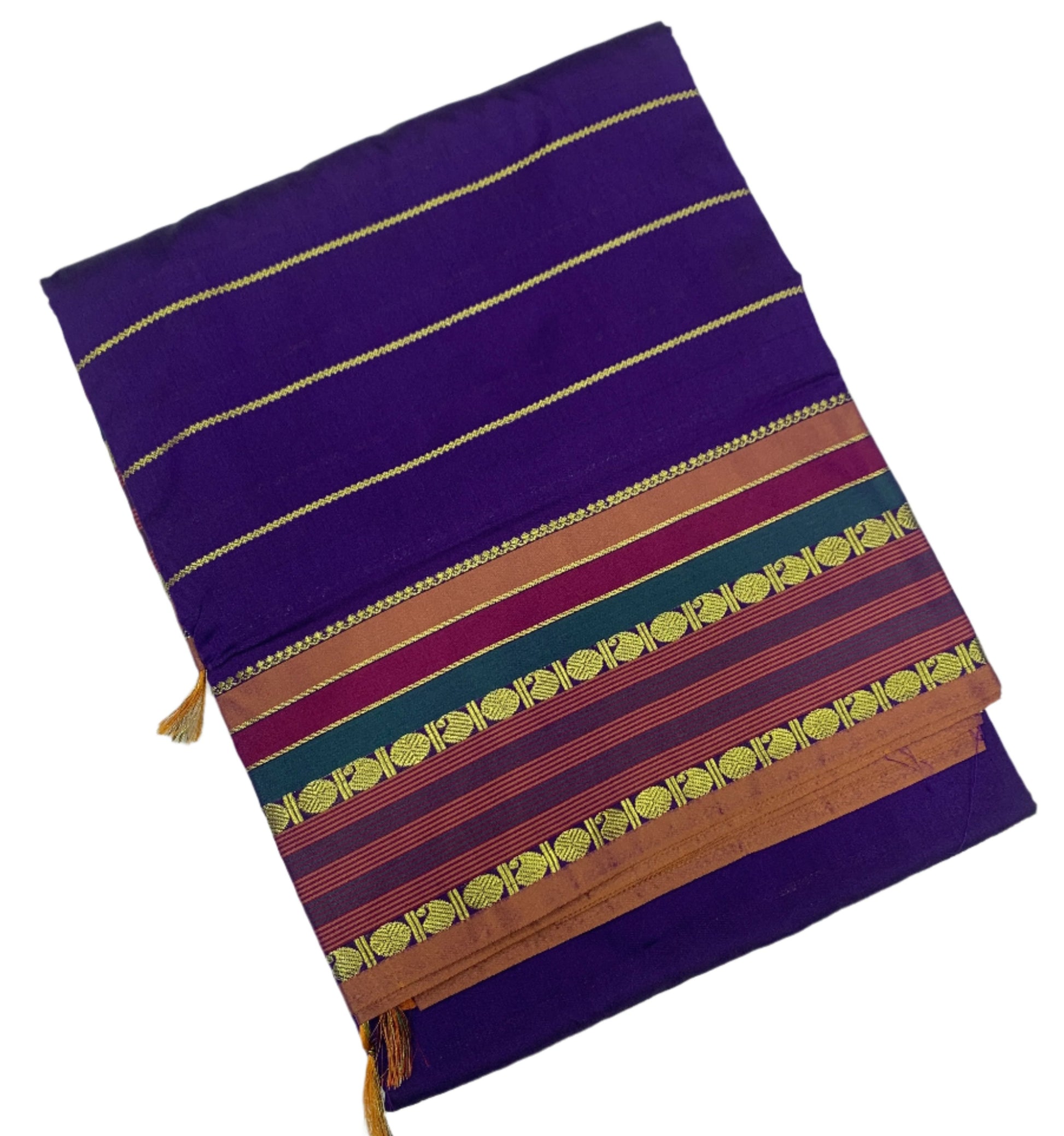 9 yards Vegan Silk Saree Violet Colour with Golden Border.