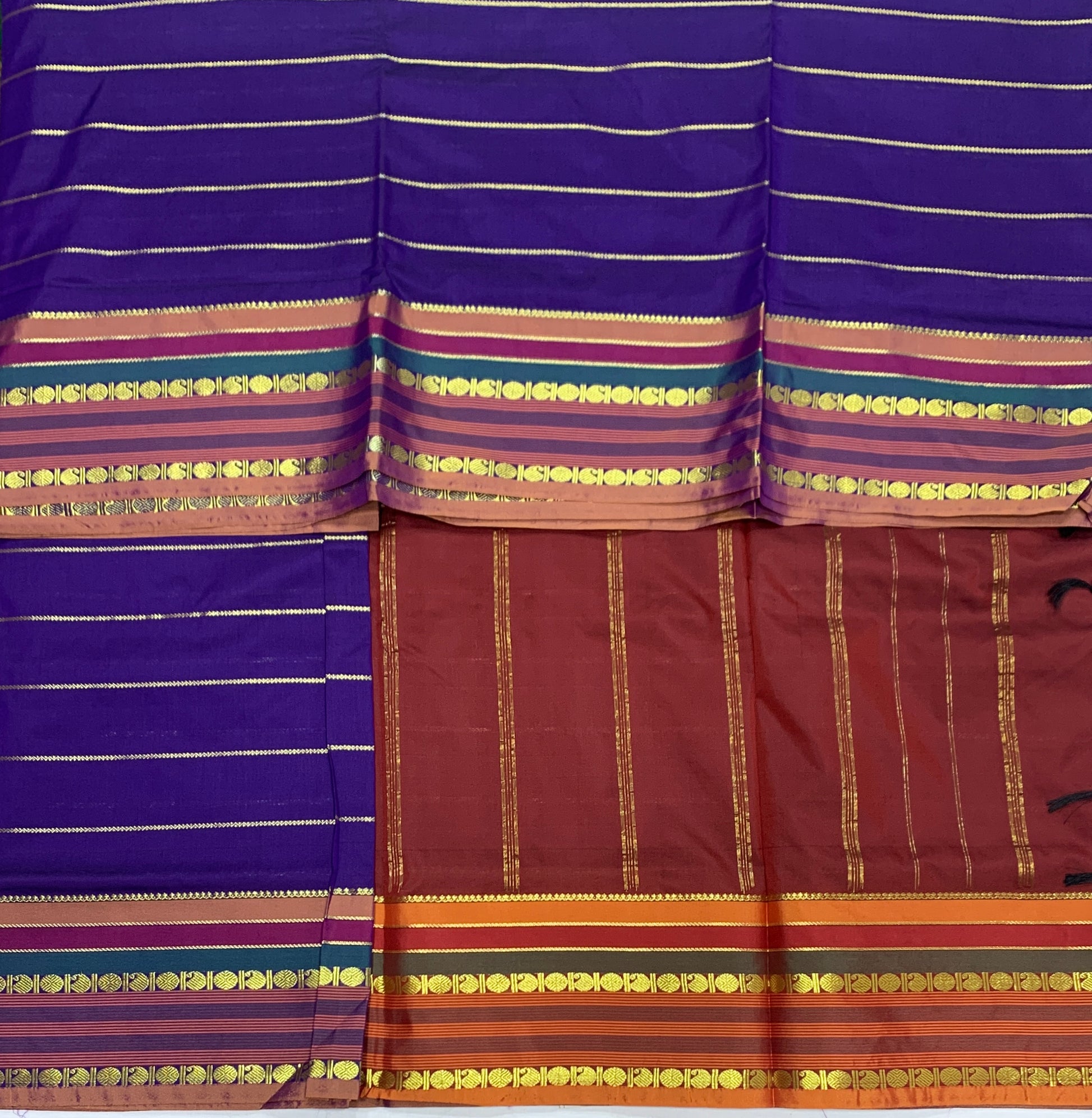 9 yards Vegan Silk Saree Violet Colour with Golden Border