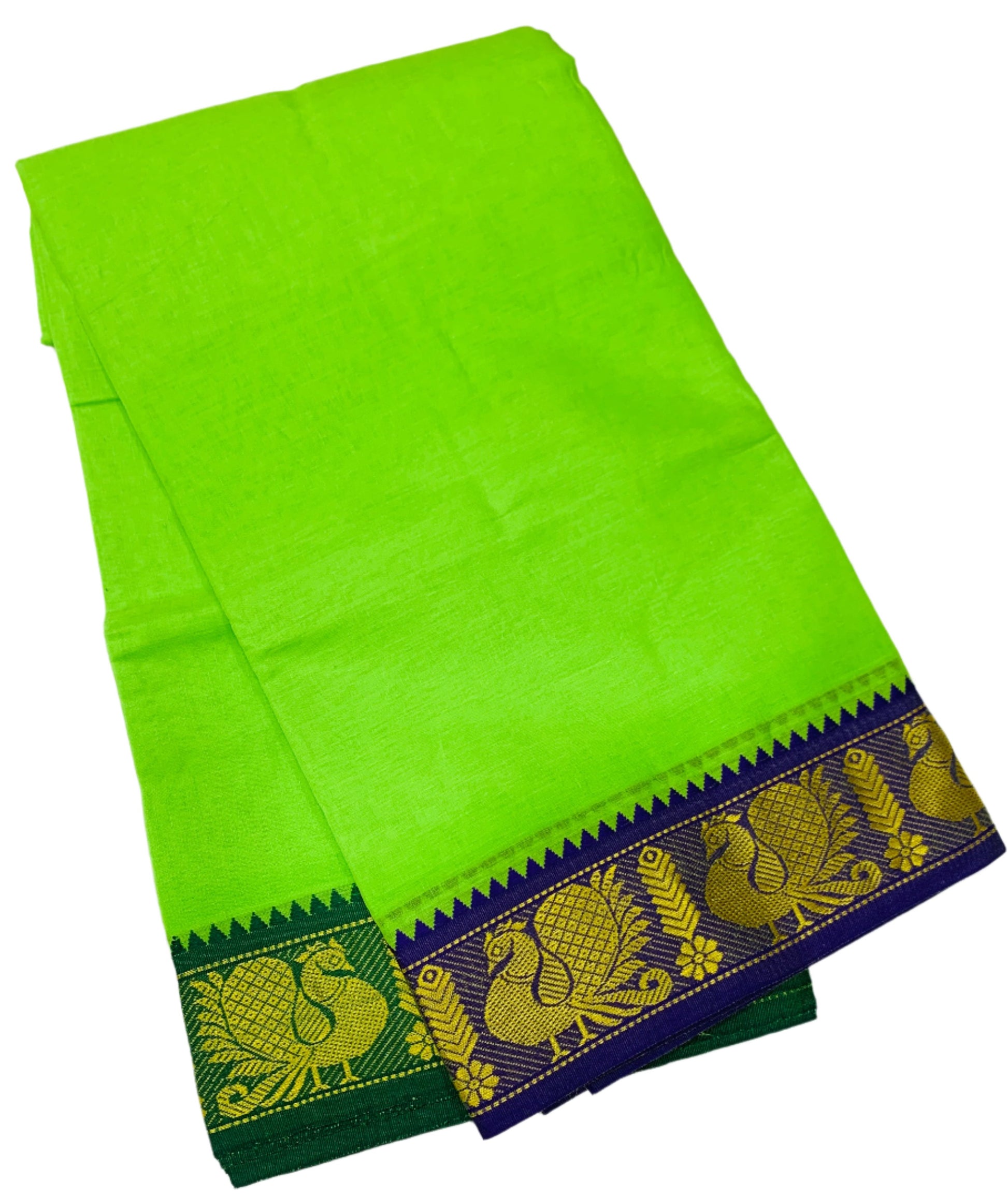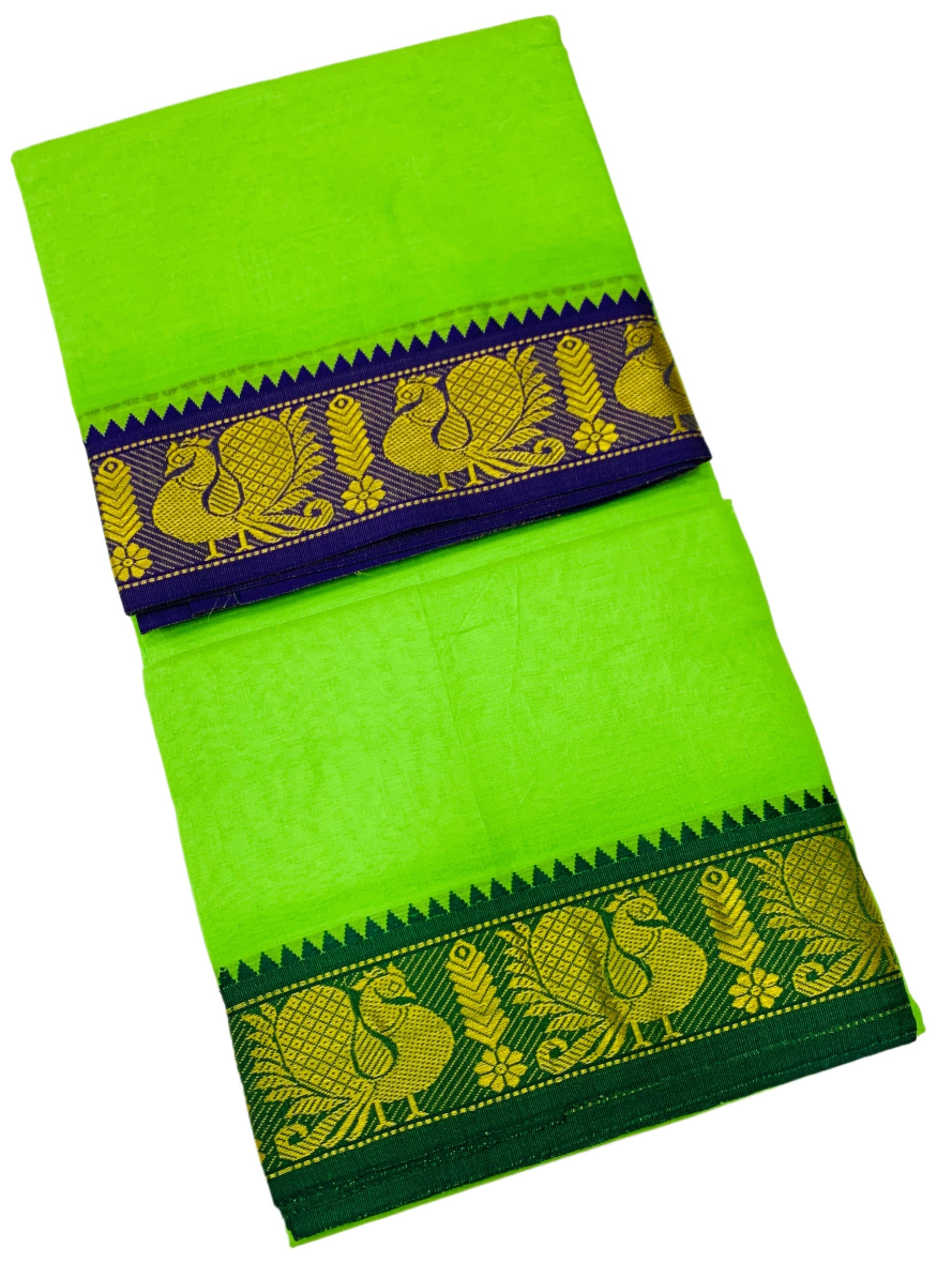 9X5 Cotton Dhoti Apple Green Colour with Blue and Green Border