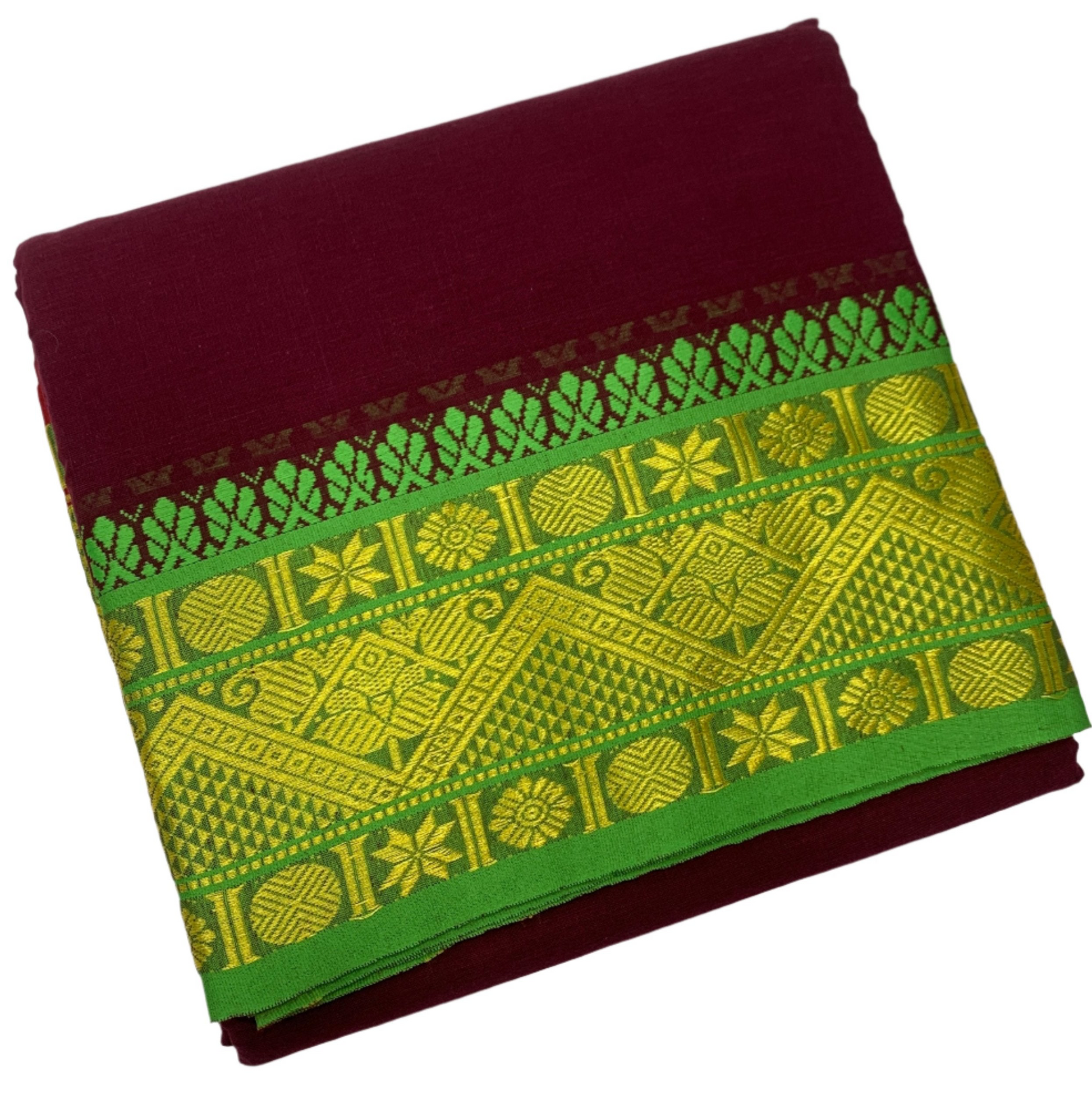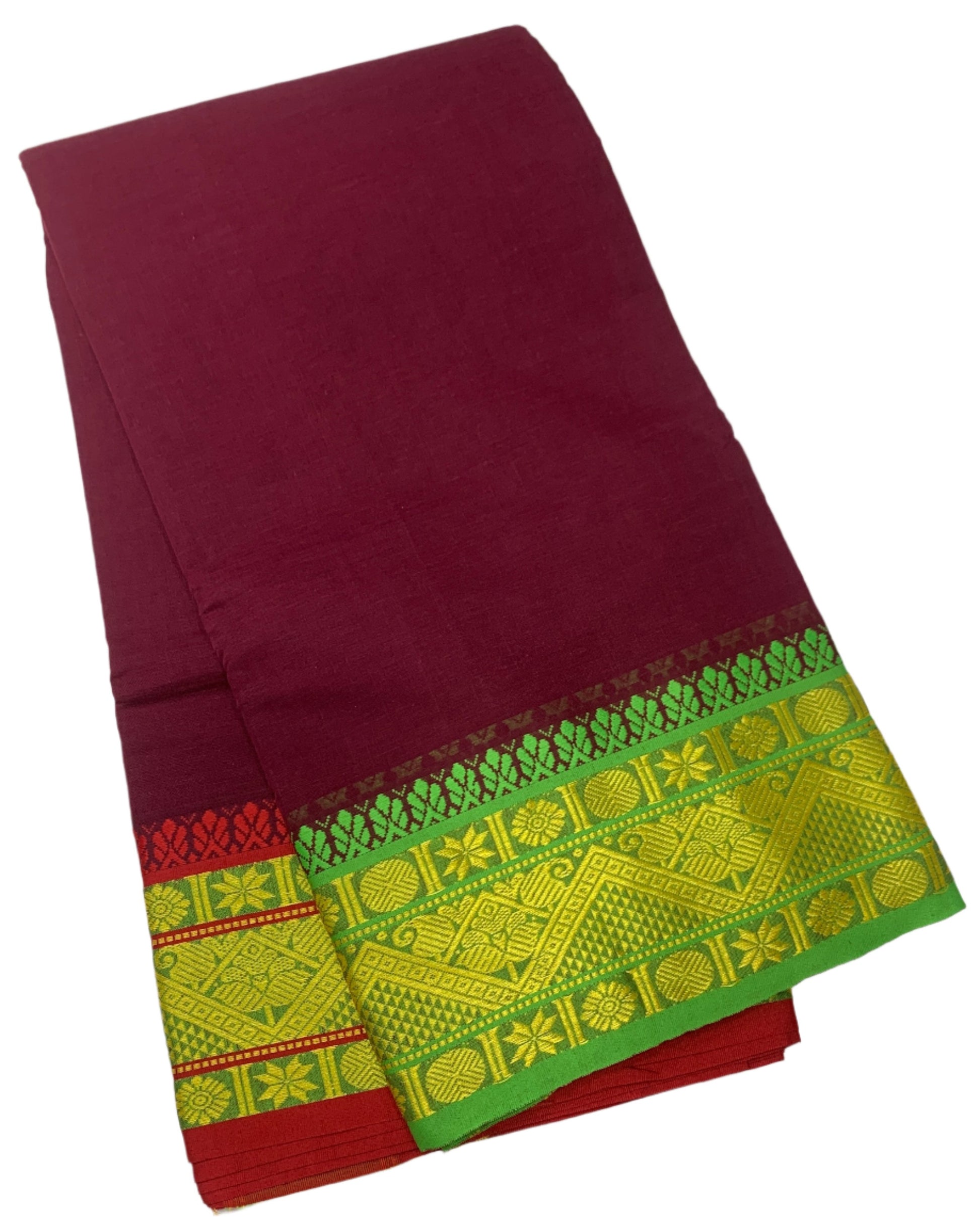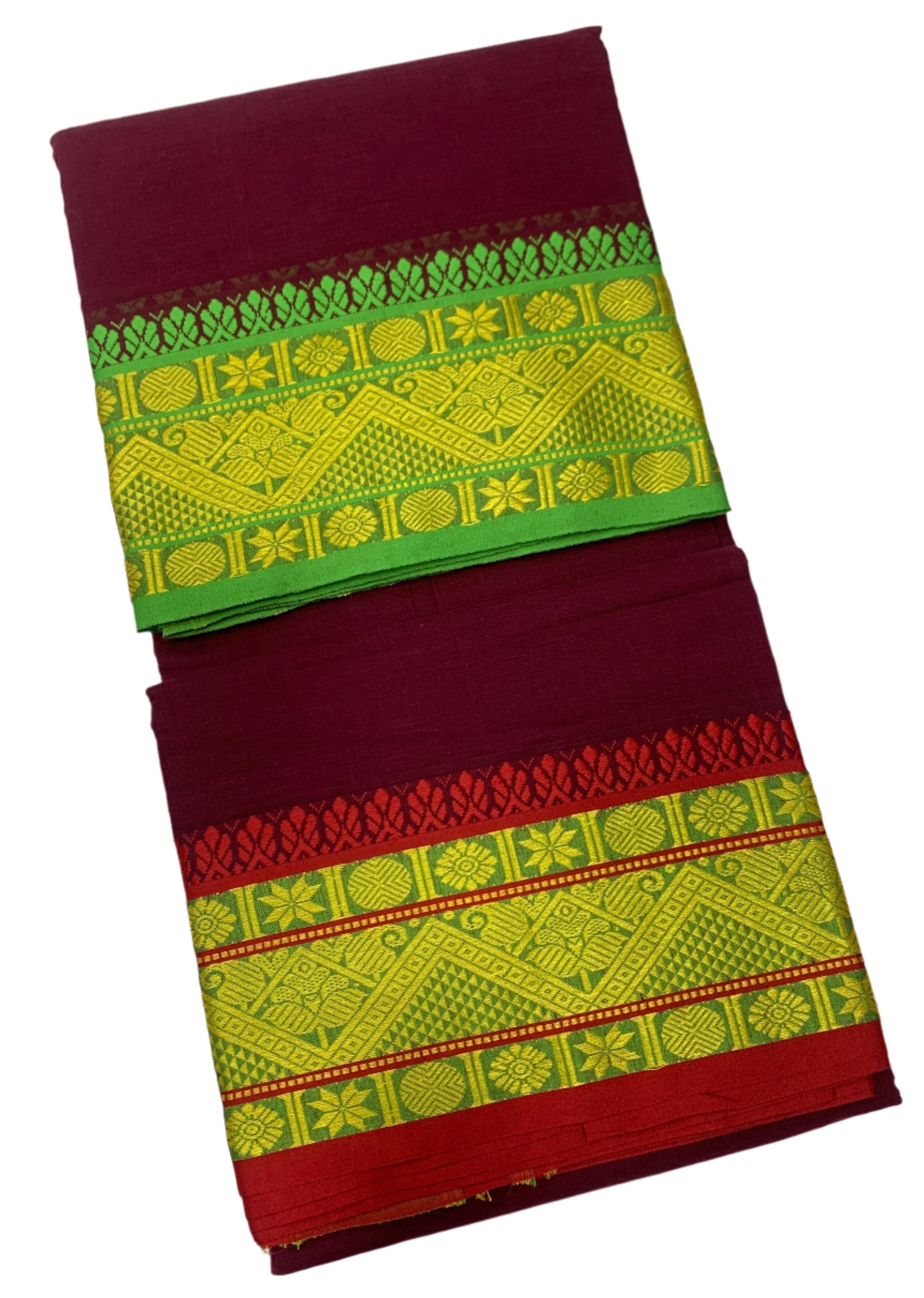 9X5 Cotton Dhoti Brown Colour with Light Green and Red Border