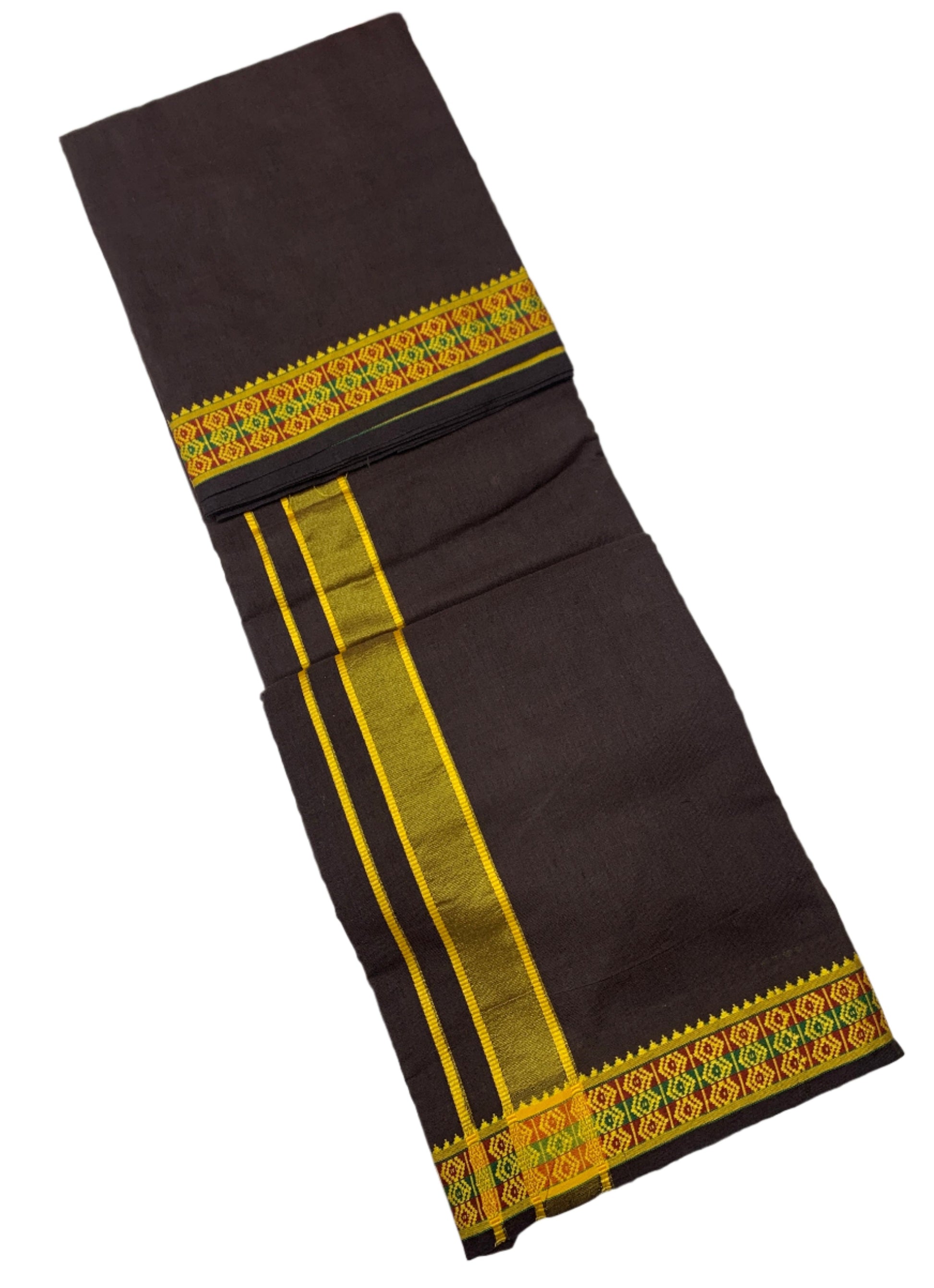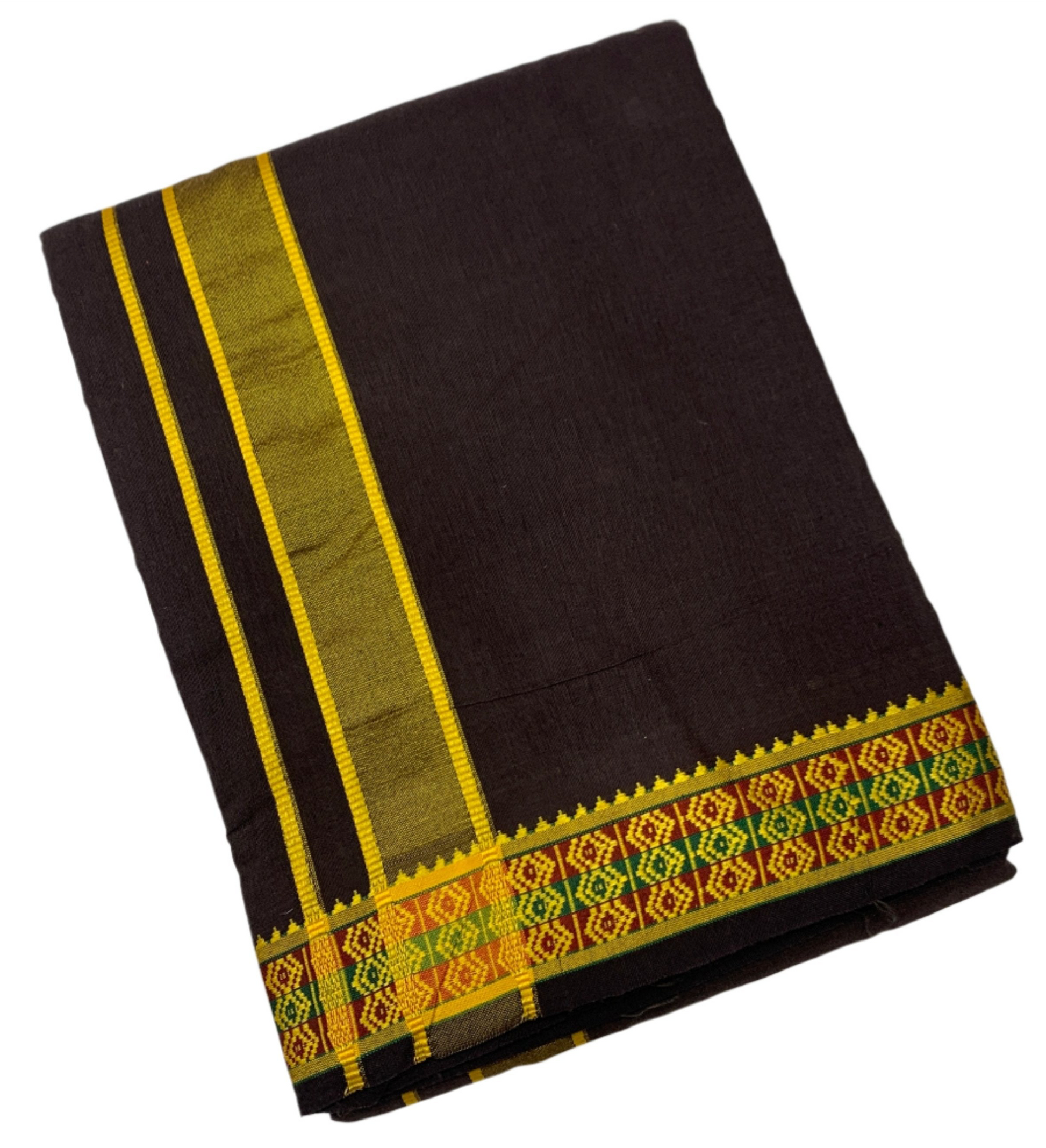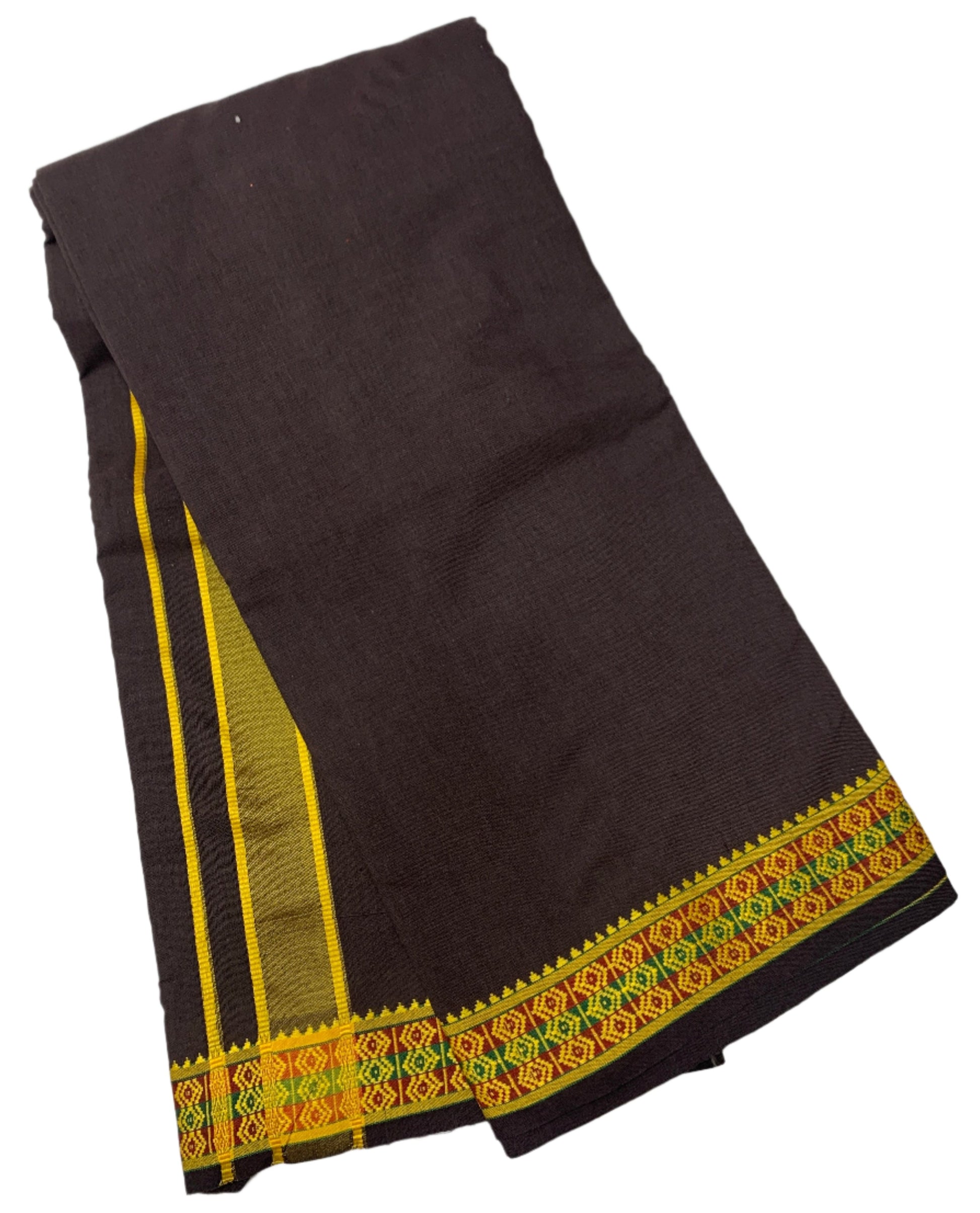 9X5 Cotton Dhoti Dark Brown Colour with Yellow Border