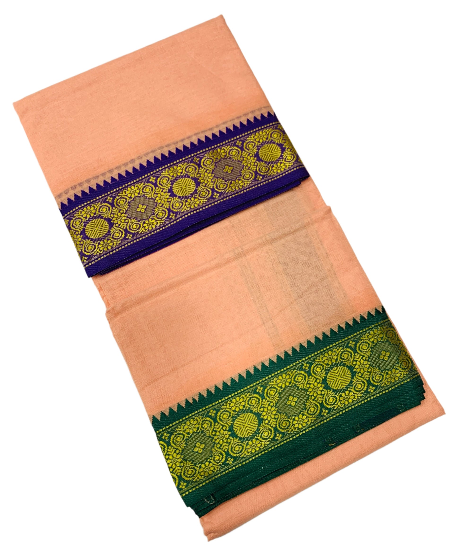 9X5 Cotton Dhoti Light Salmon Colour with Blue and Green Border