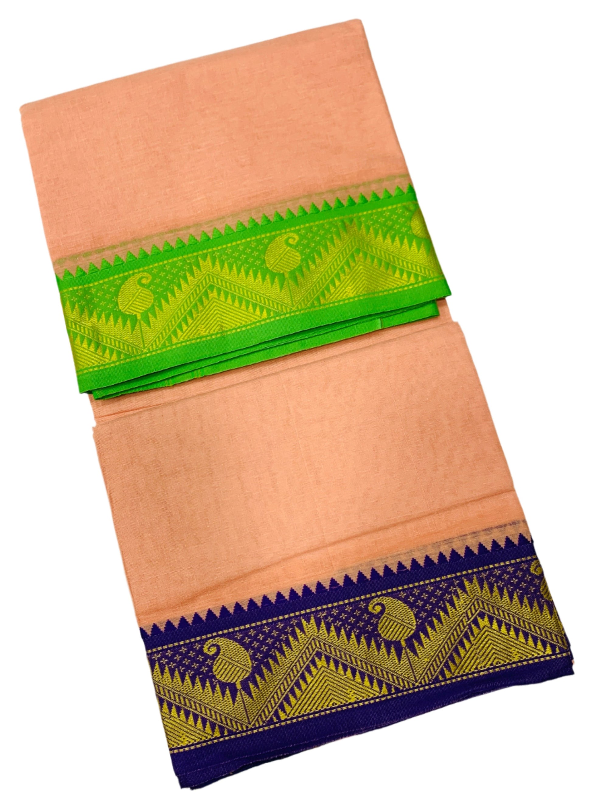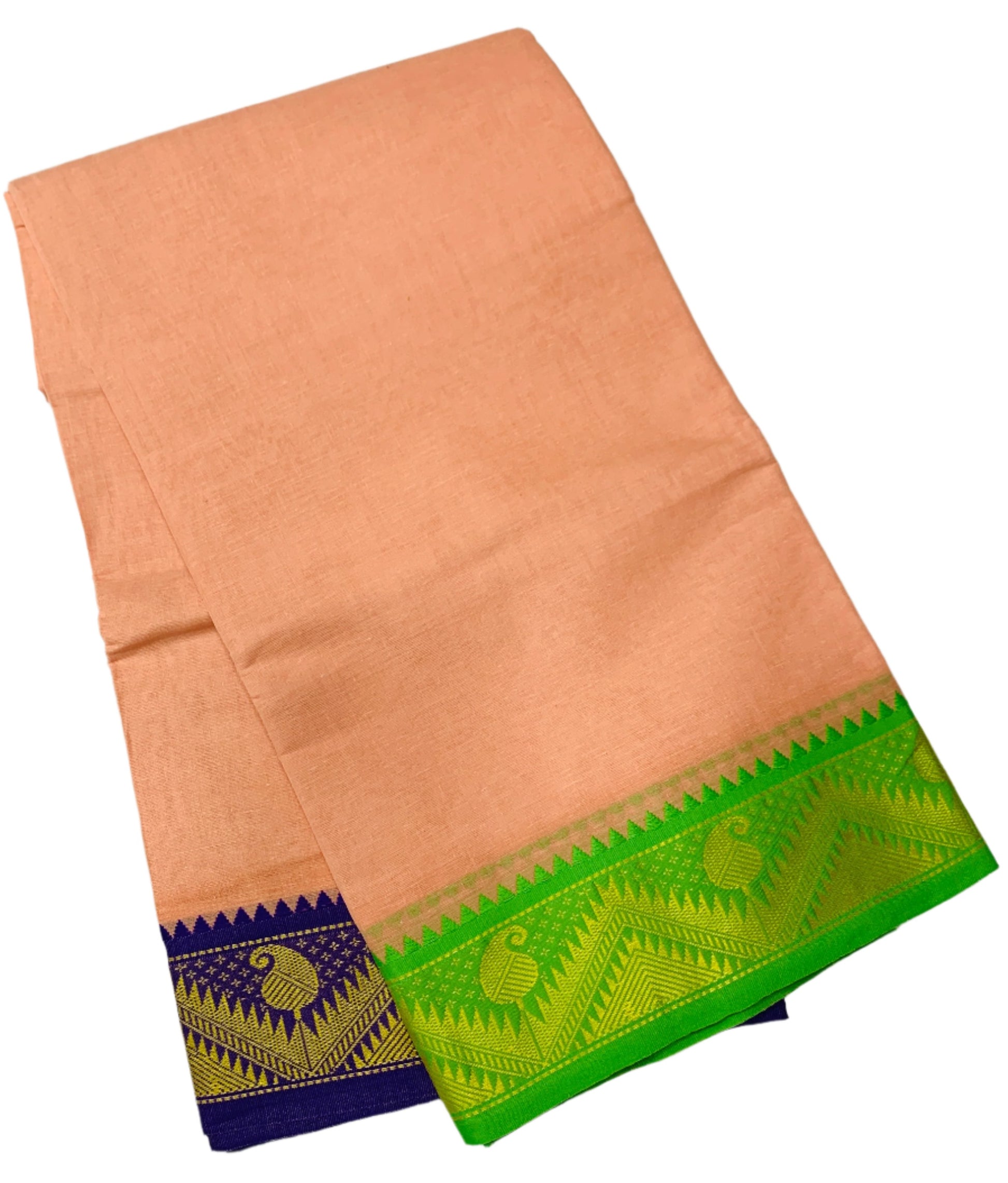 9X5 Cotton Dhoti Light Salmon Colour with Green and Blue Border