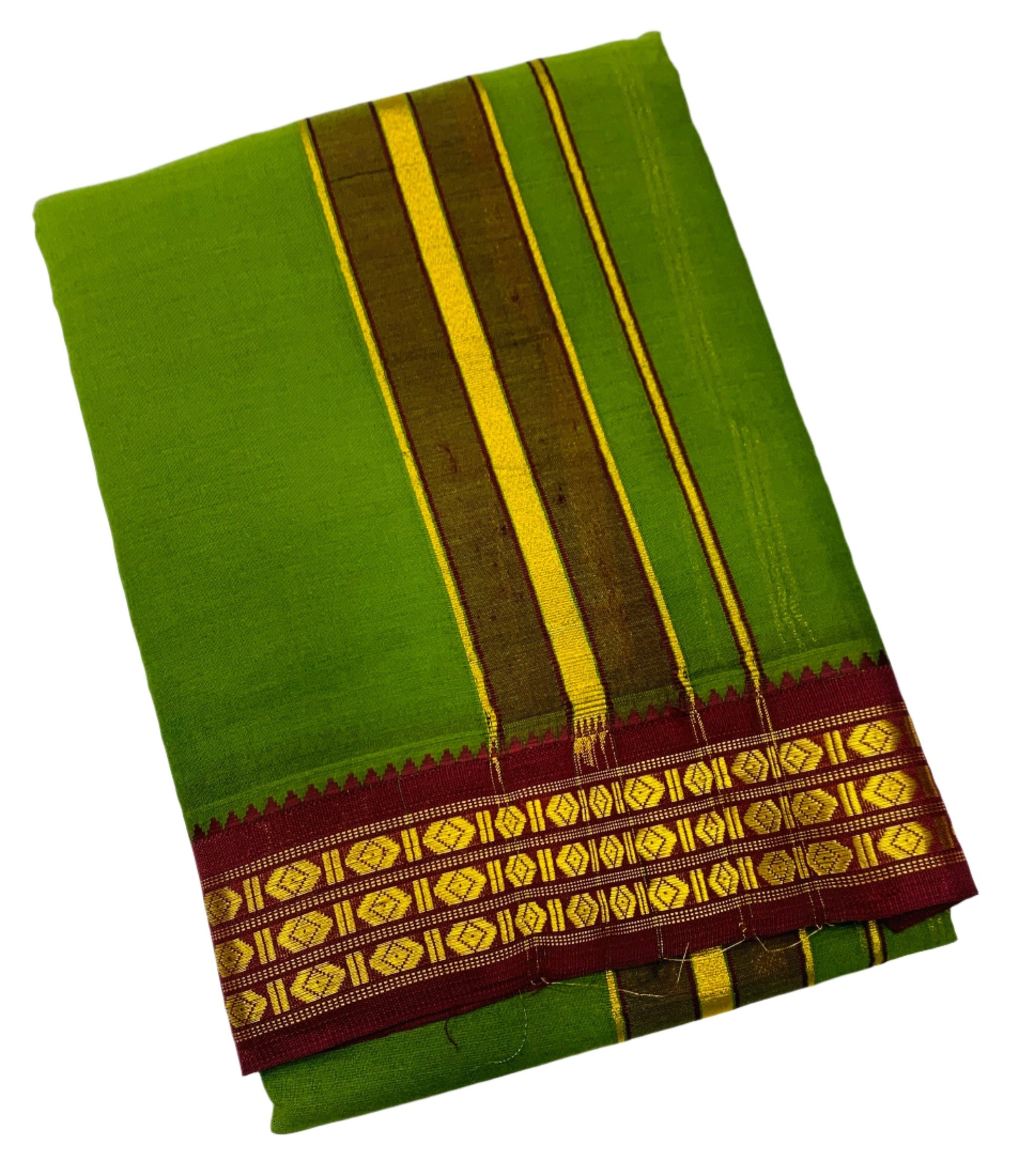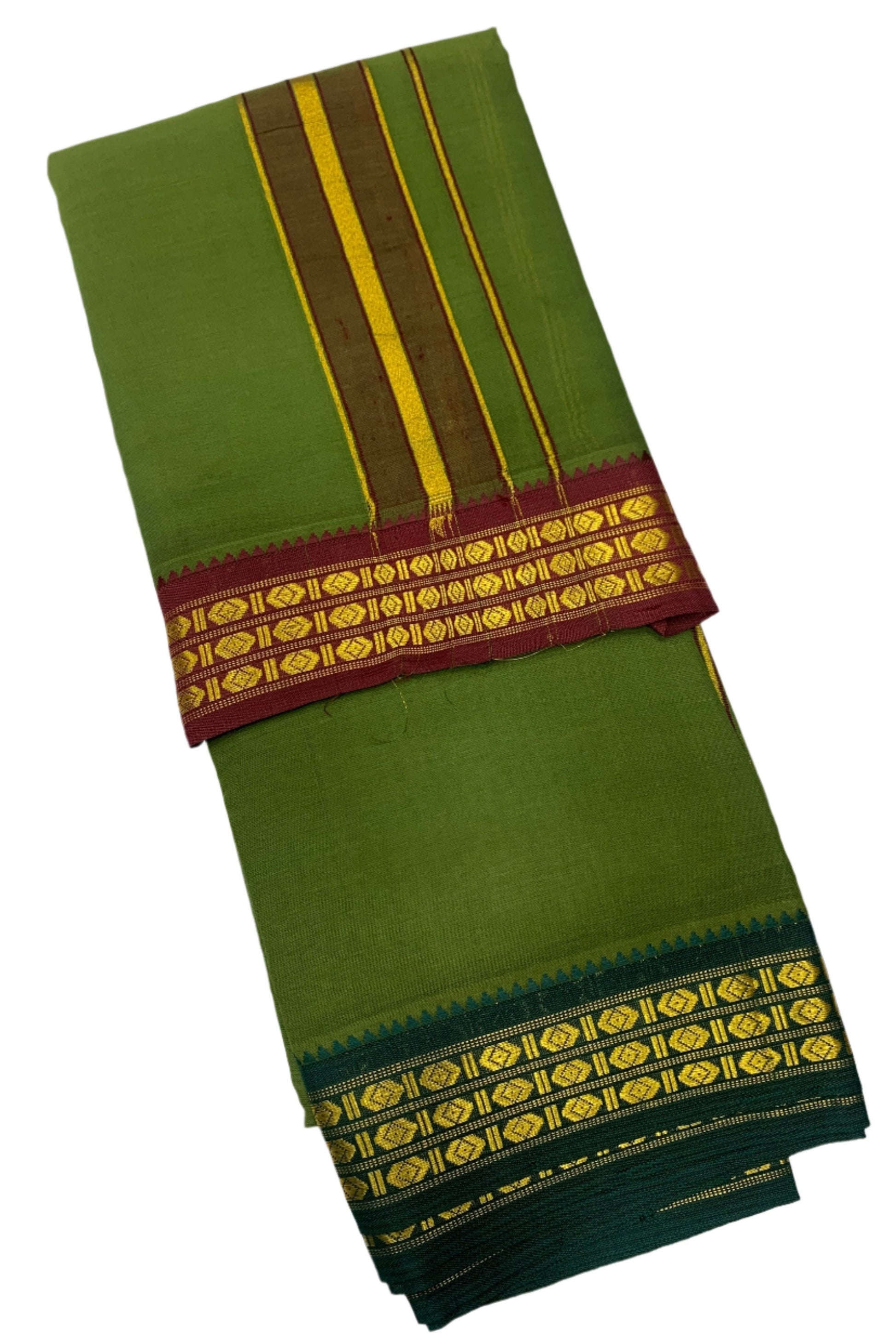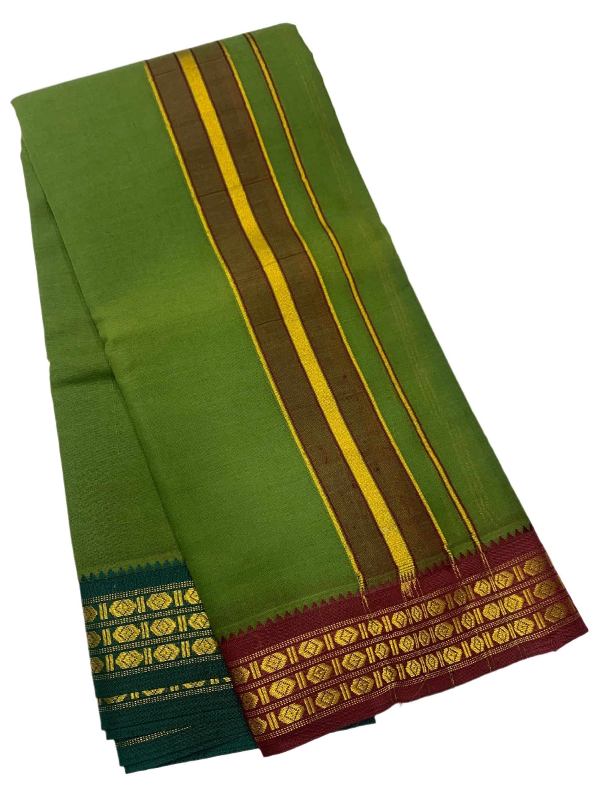 9X5 Cotton Dhoti Olive Green Colour with Maroon and Green Border