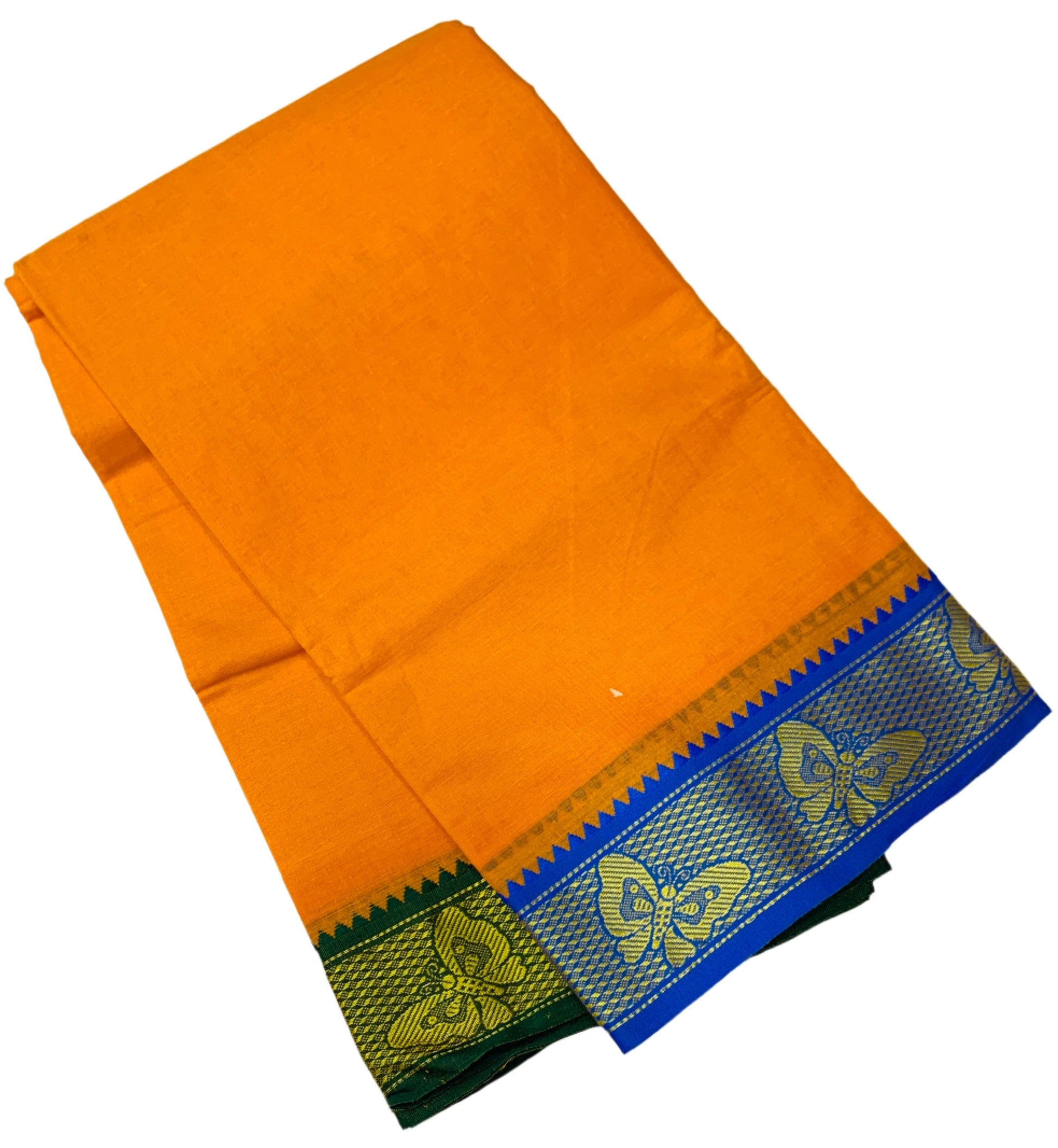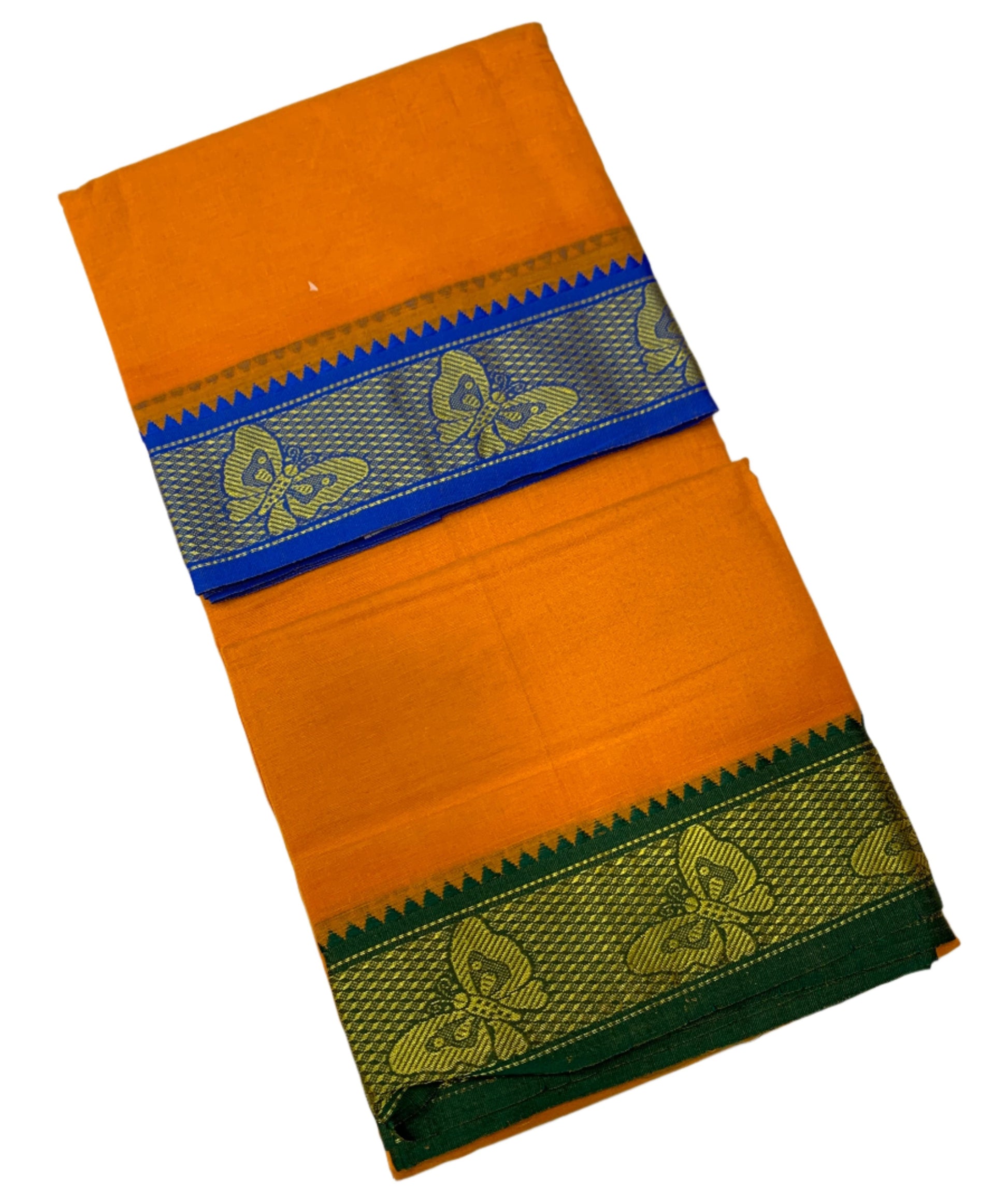 9X5 Cotton Dhoti Mango Yellow Colour with Blue and Green Border