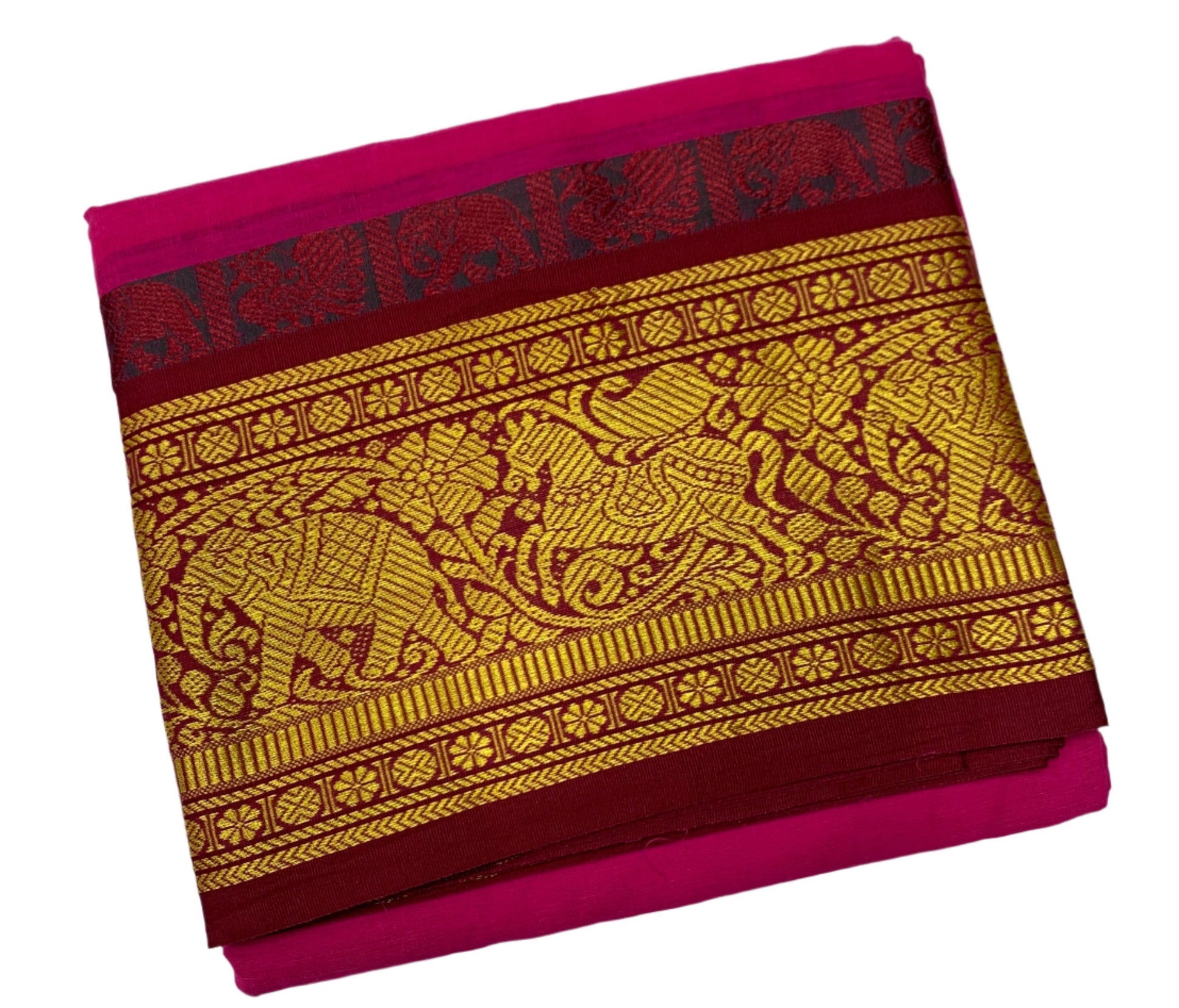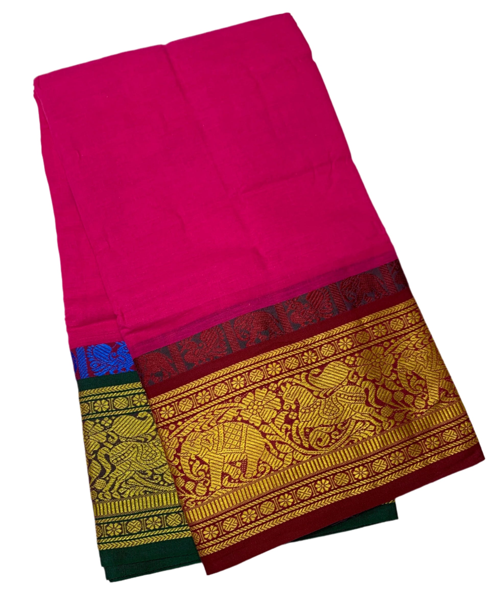 9X5 Cotton Dhoti Pink Colour with Maroon and Green Border