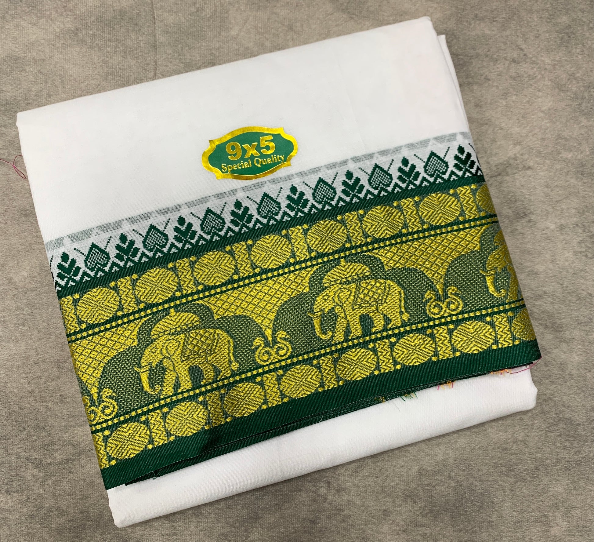 9X5 Cotton White Colour with Green and Pink Border with Angavastarm