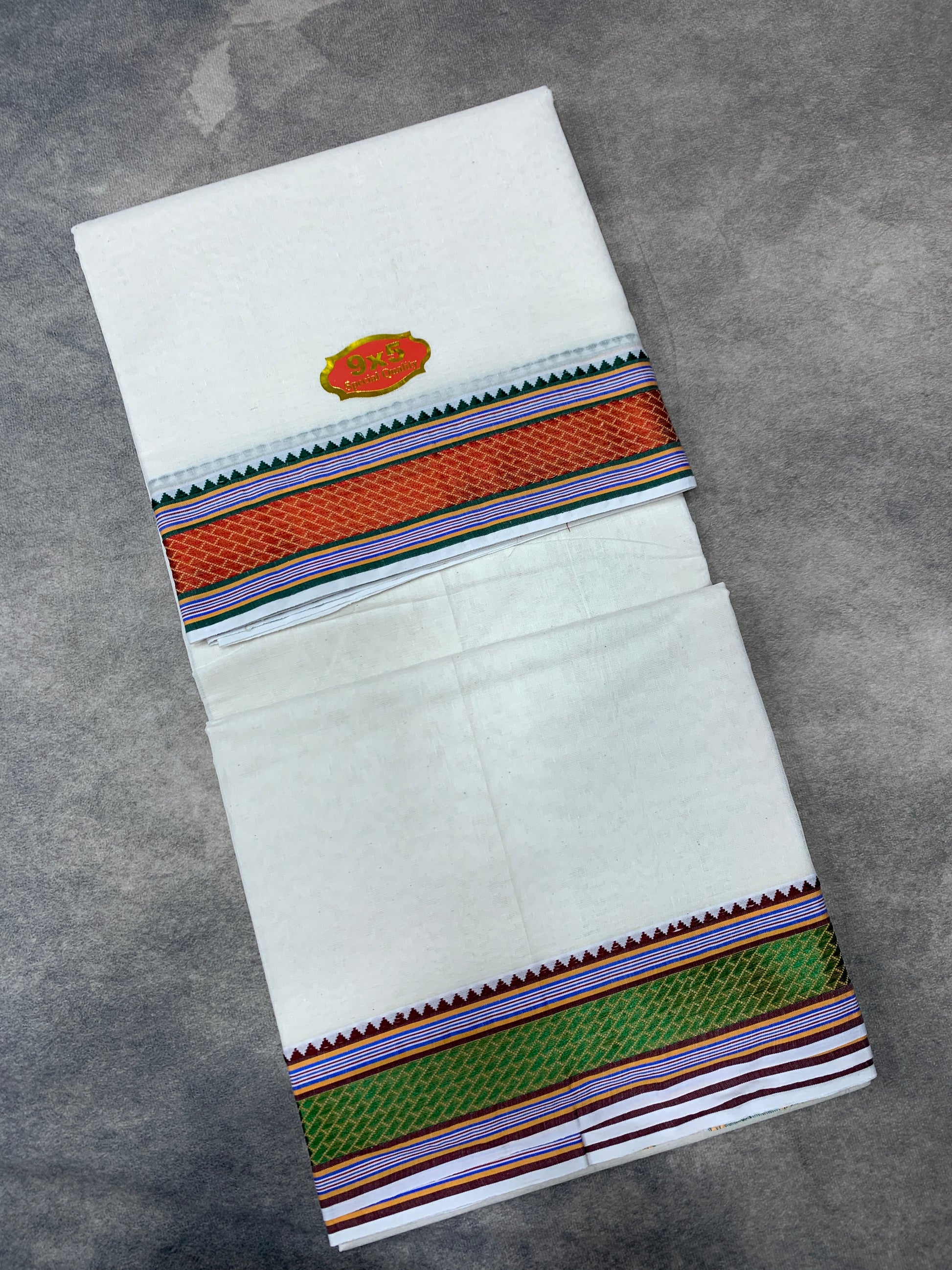 9X5 Cotton Dhoti White Colour with Red and Green Border