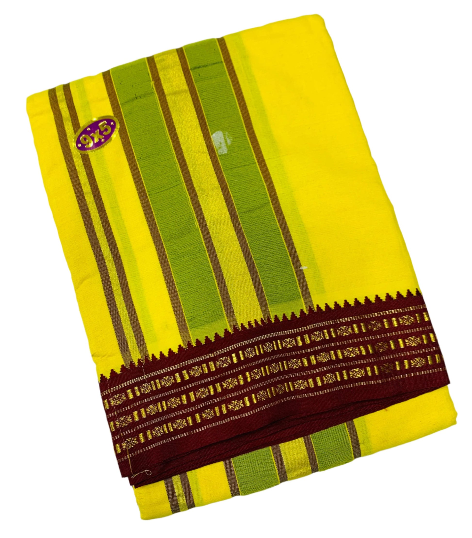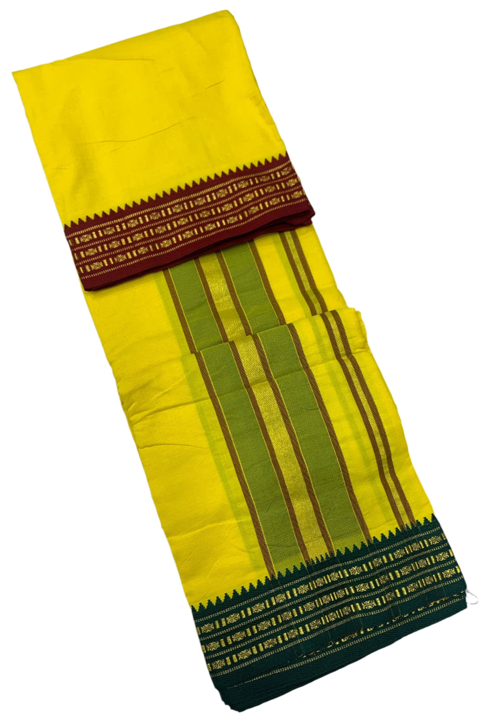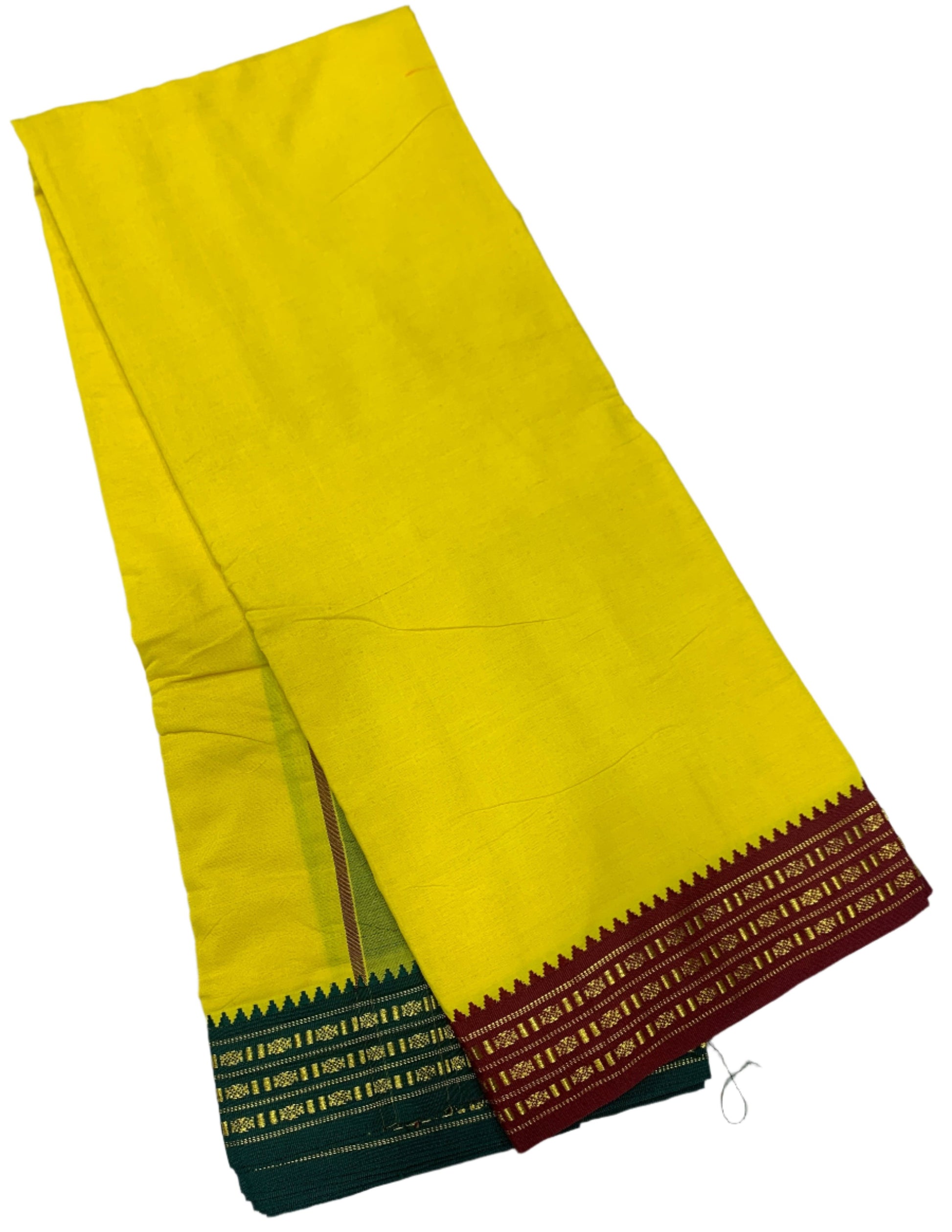 9X5 Cotton Dhoti Yellow Colour with Maroon and Green Border
