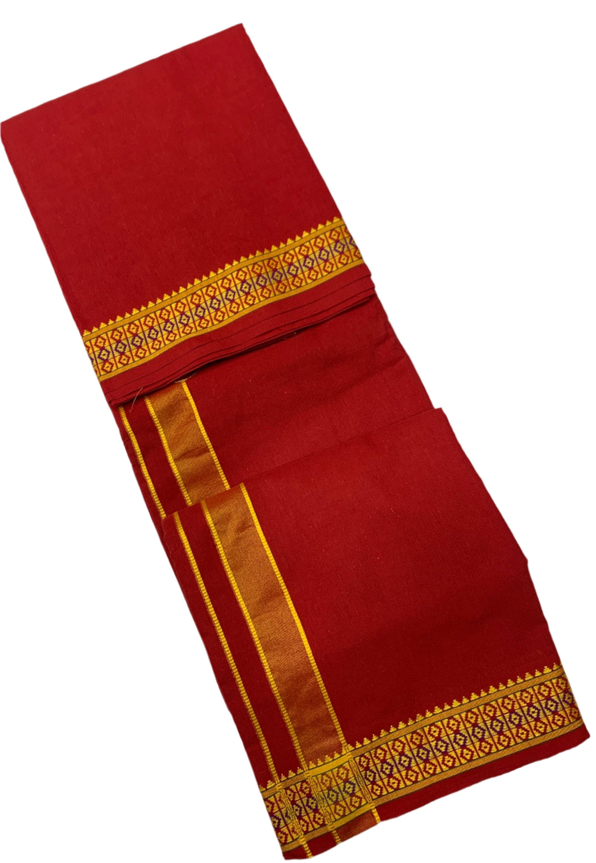 9X5 Cotton Red Colour with Red & Blue Diamond Border