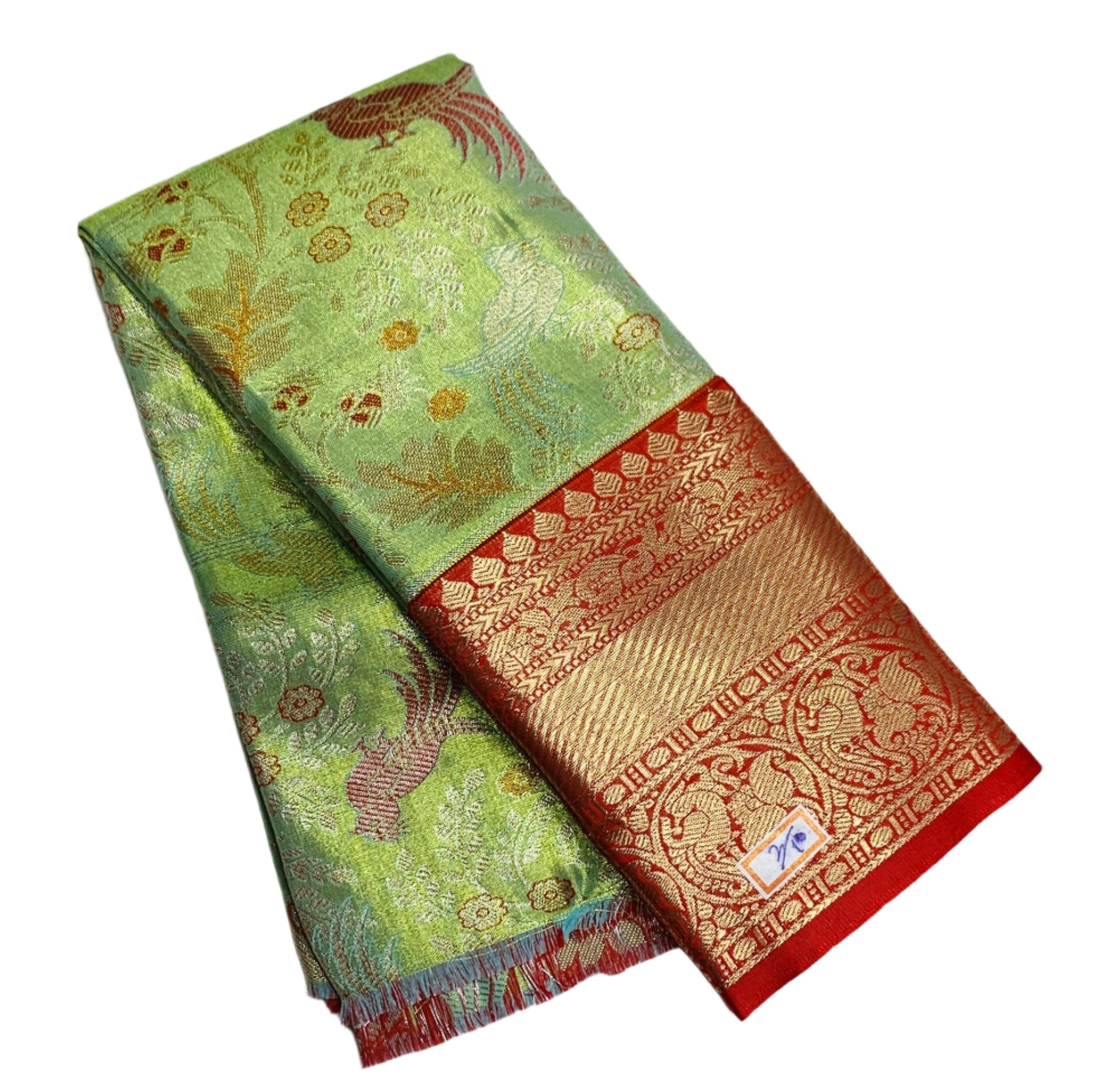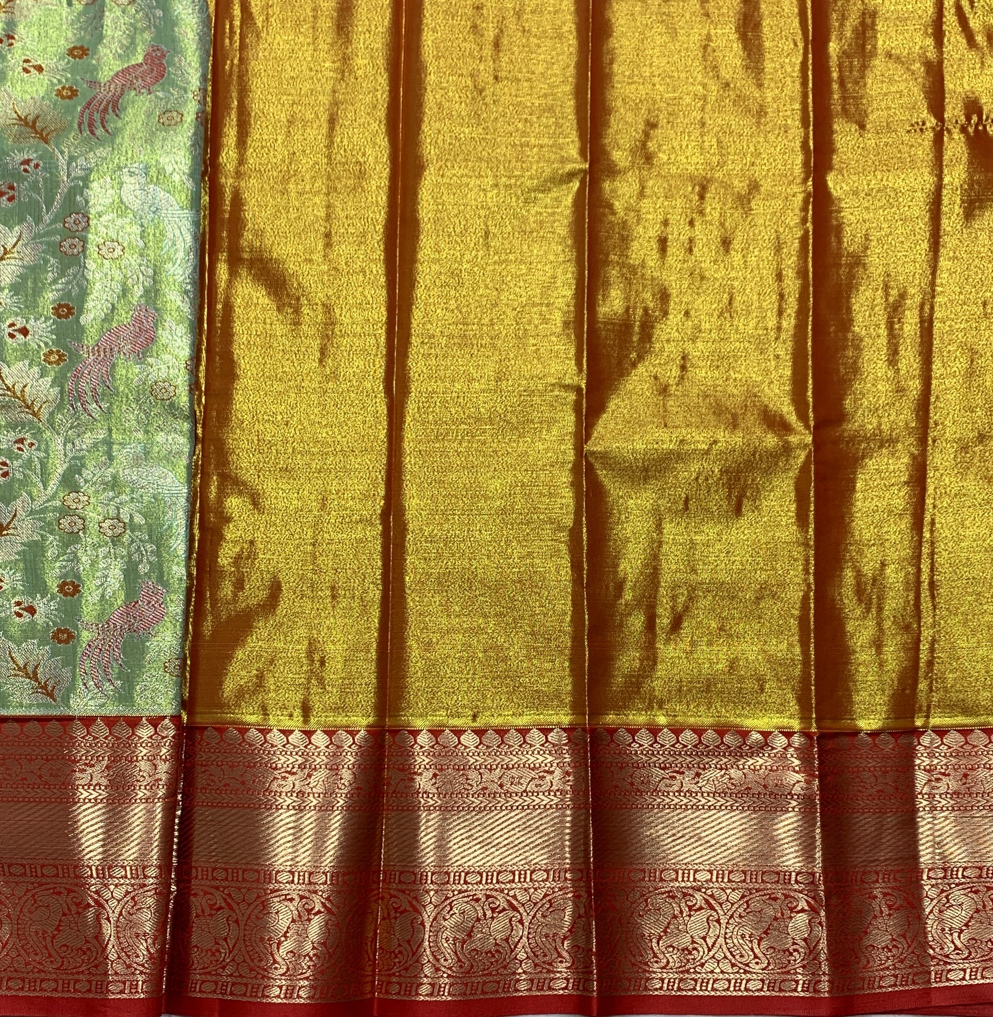 Apple Green Shade Vegan Silk Kids Pattu Pavadai with Contrast Border unstitched Pattu Pavadai material for kids for age newborn to 2 Years