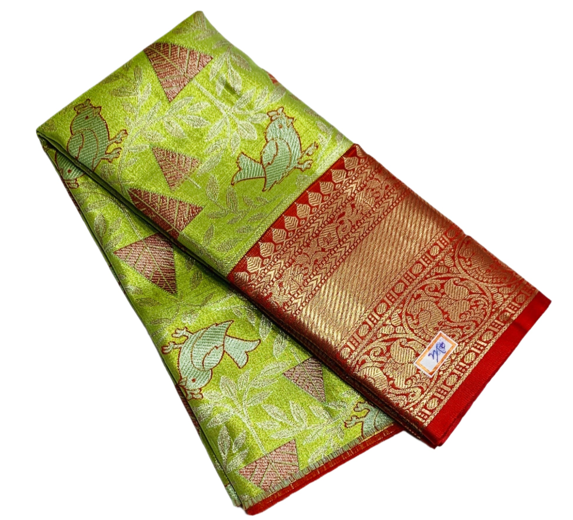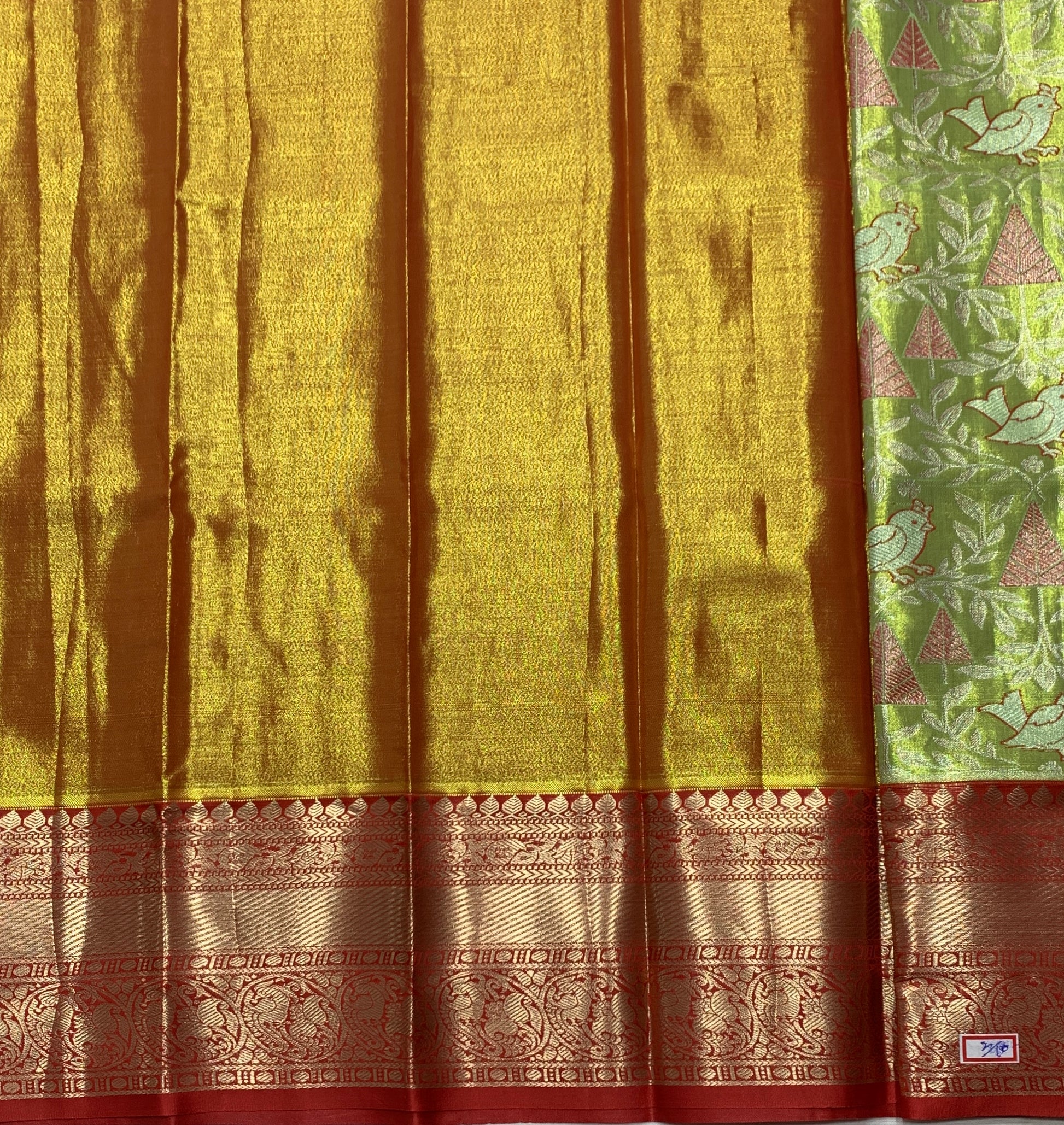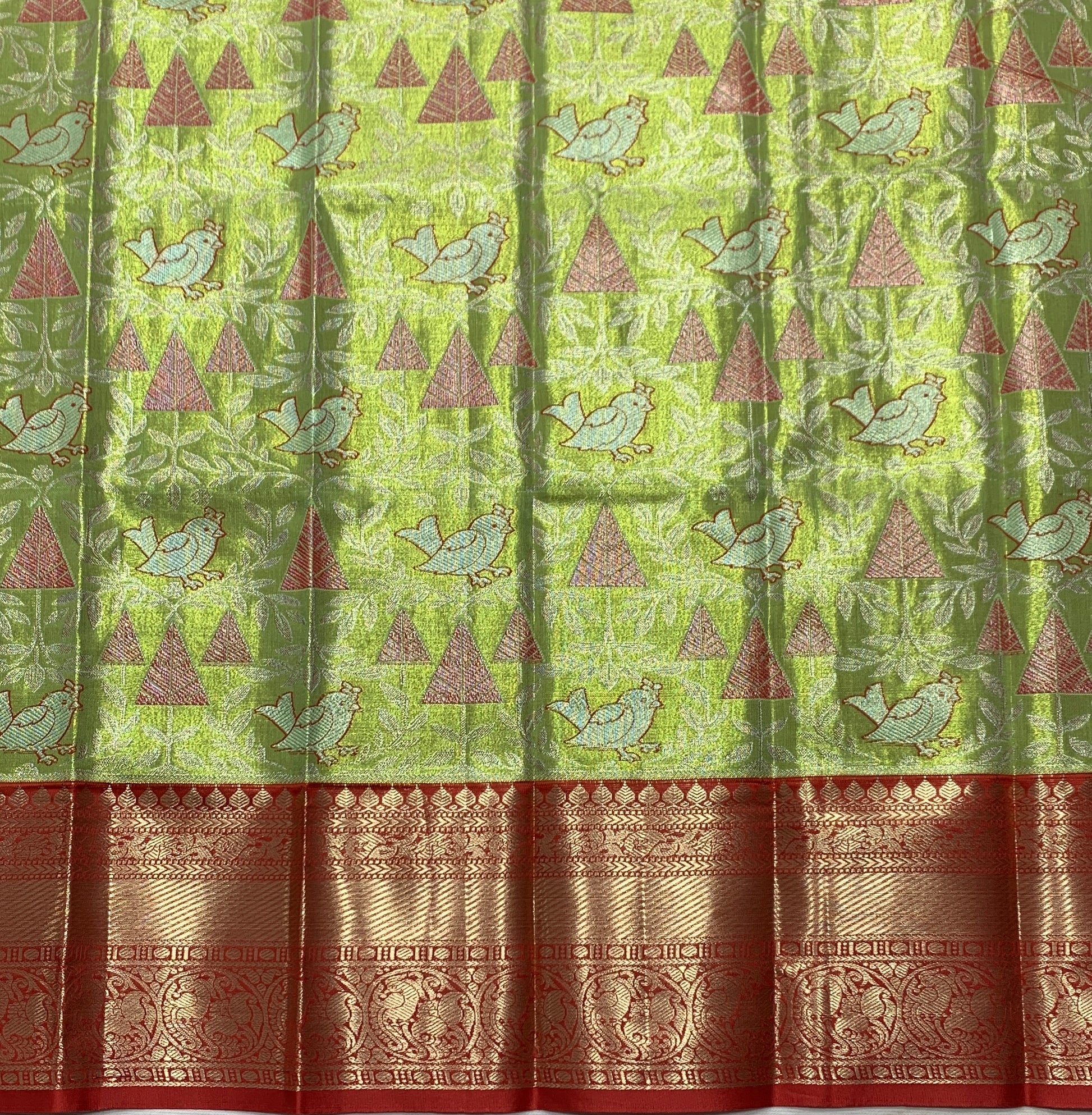 Apple Green Shade Vegan Silk Kids Pattu Pavadai with Contrast Border unstitched Pattu Pavadai material for kids for age newborn to 2 Years