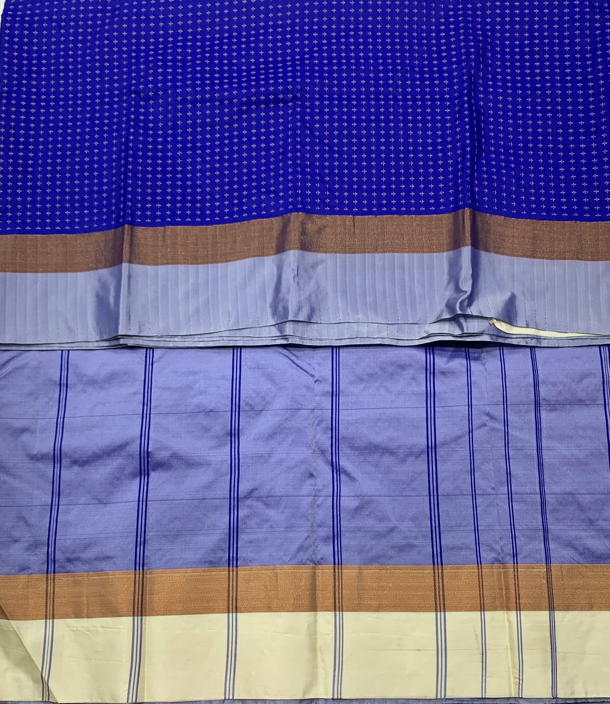 Arani Silk Saree Blue Colour with Sky Blue and Golden Border