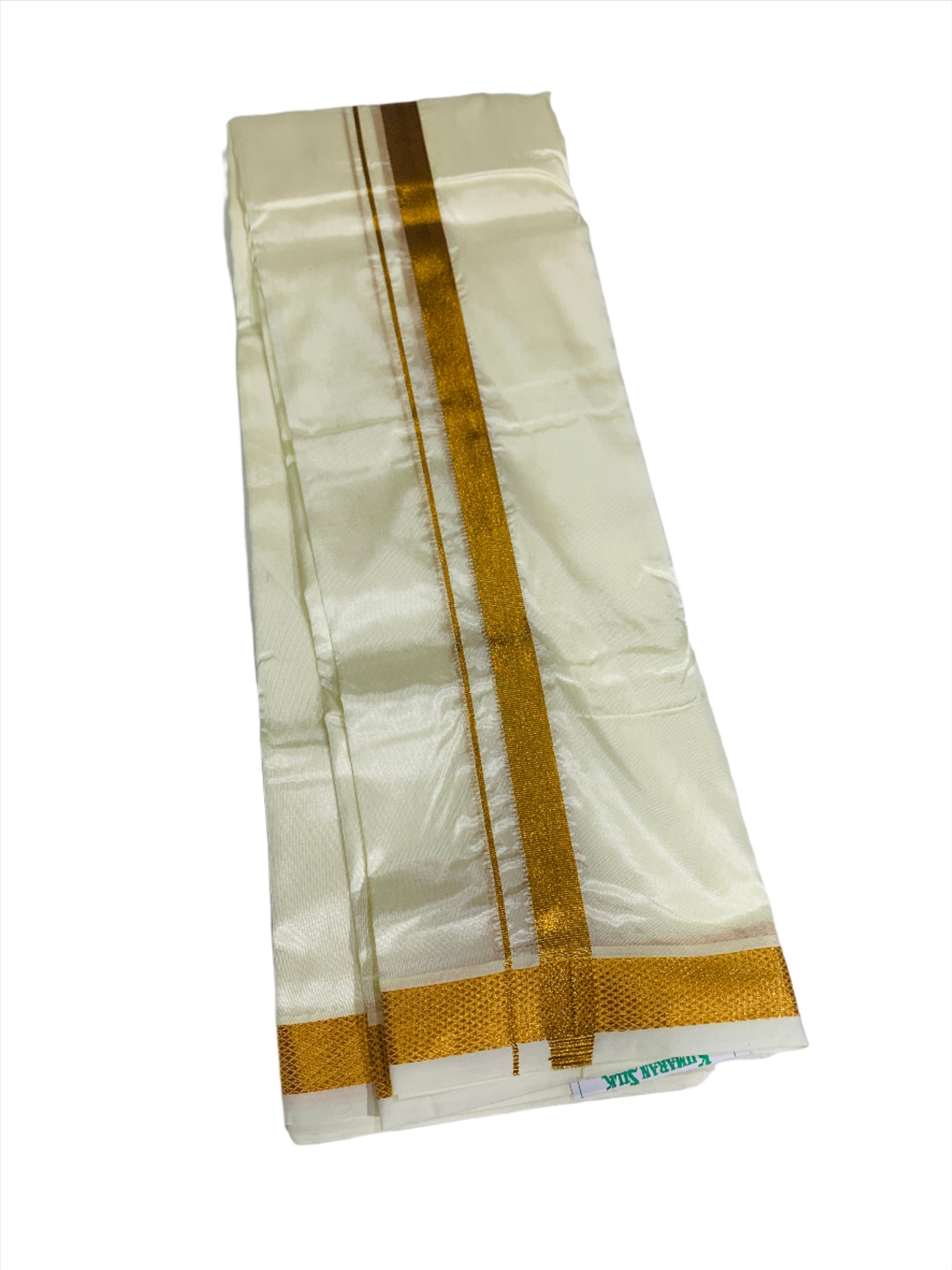 Art silk Dhoti 8 Mulam Cream Colour Small Border