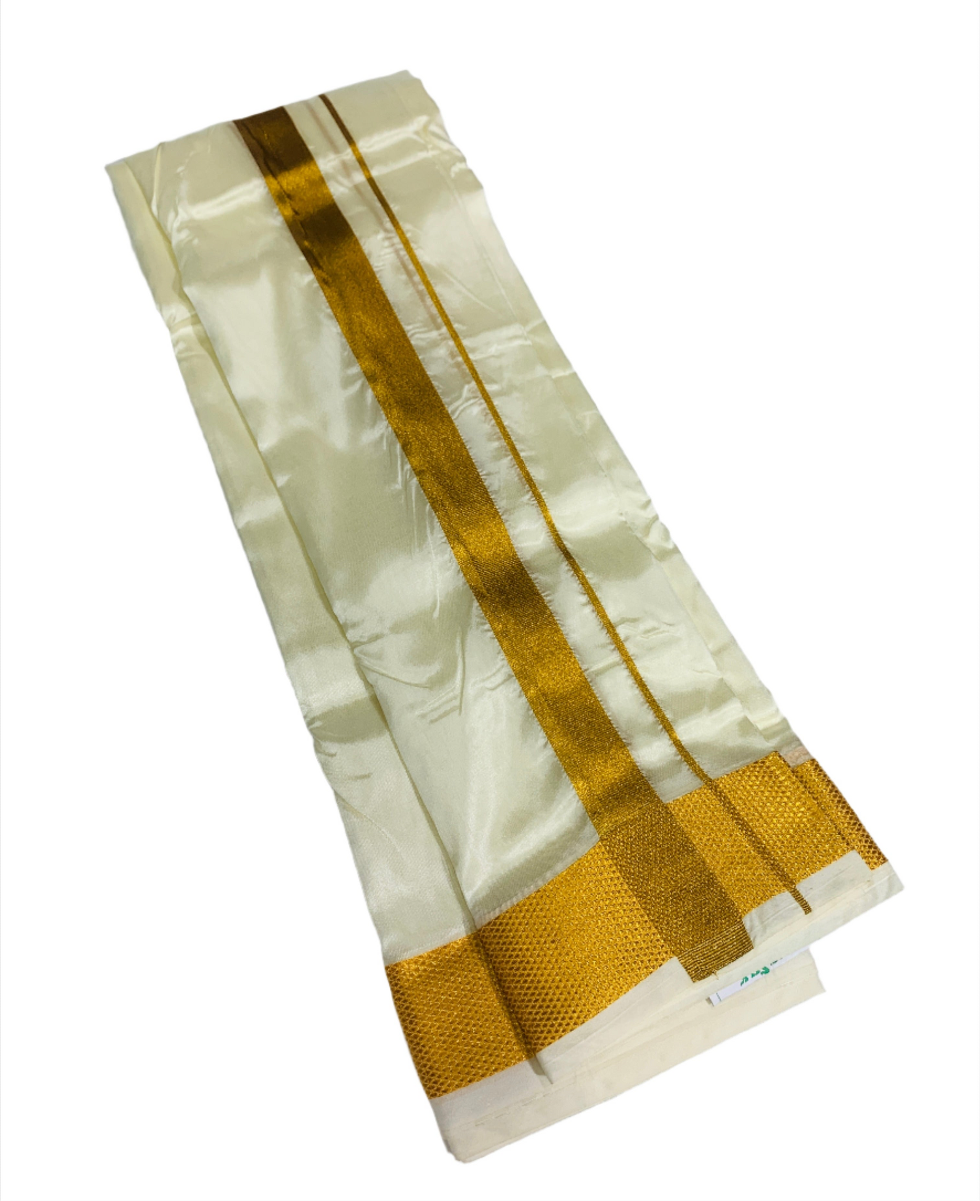 Cream Colour 8 Mulam Art Silk Dhoti Small Border. Dry wash only.