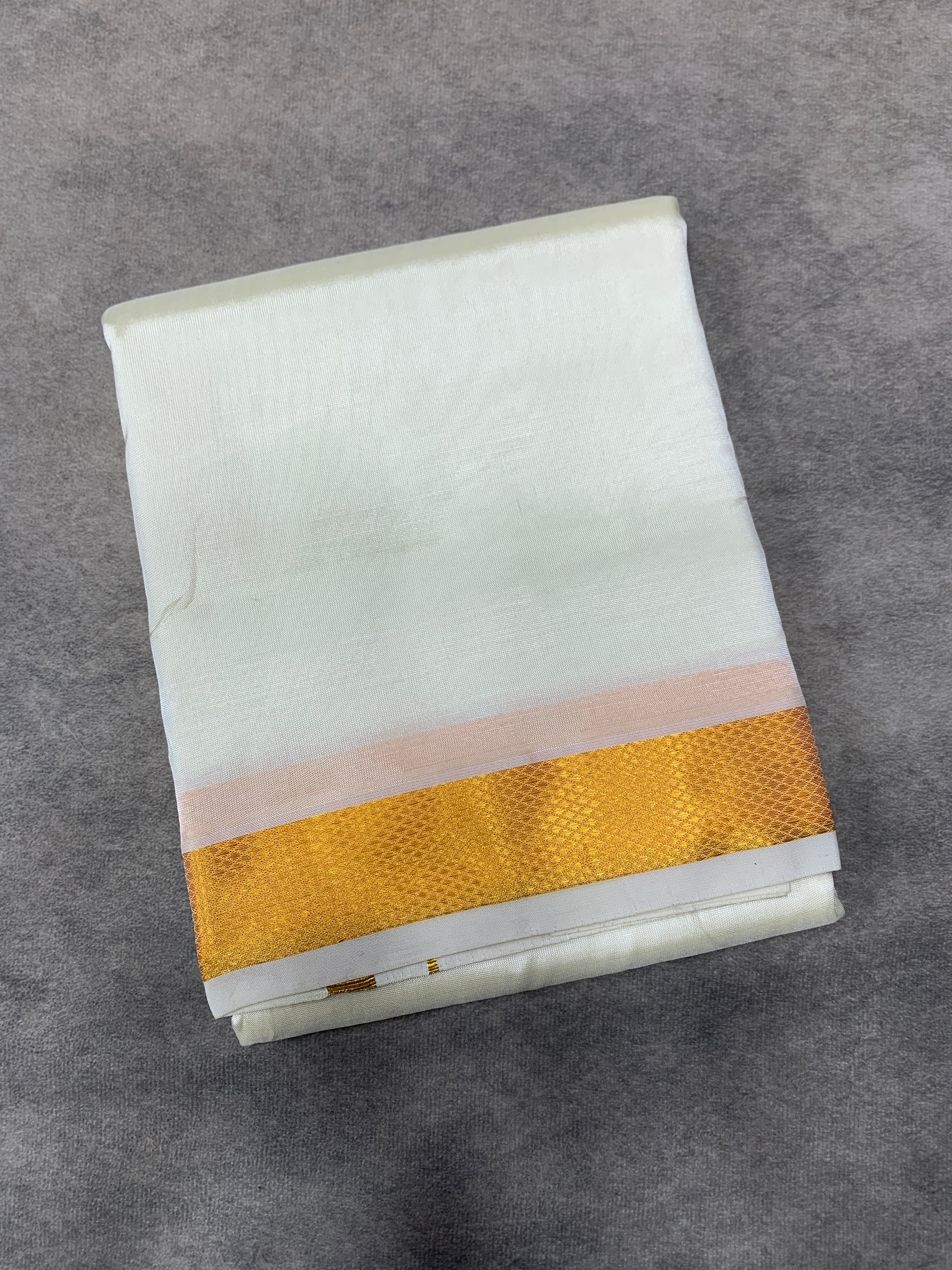 Art Silk Dhoti 8 Mulam Cream Colour with Small Border
